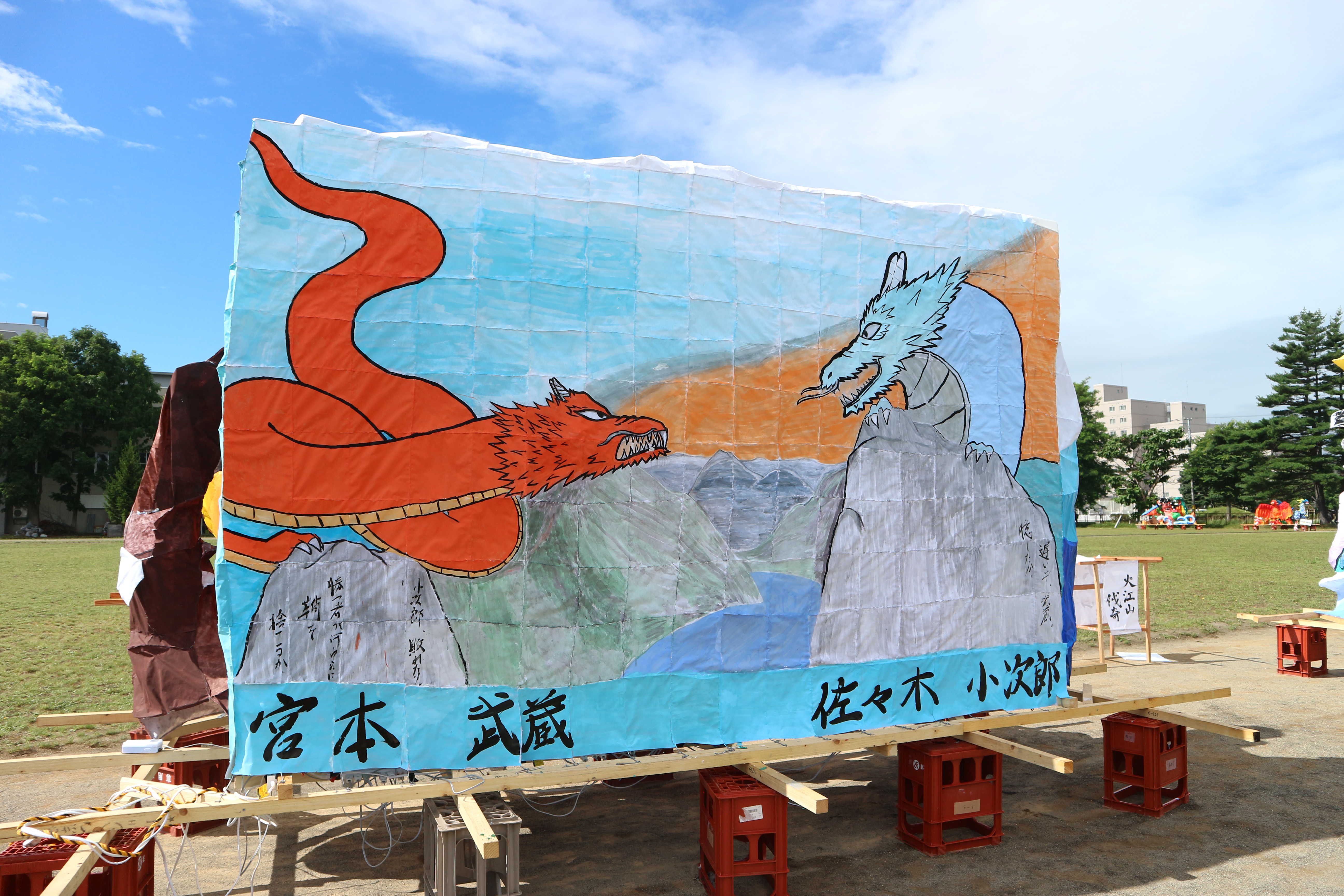 写真が少なくおそらくの話になってしまいますが、向かって右側の人物 (宮本武蔵かな?) の左肘が前に出ていて、空間をよく使えている気がします!