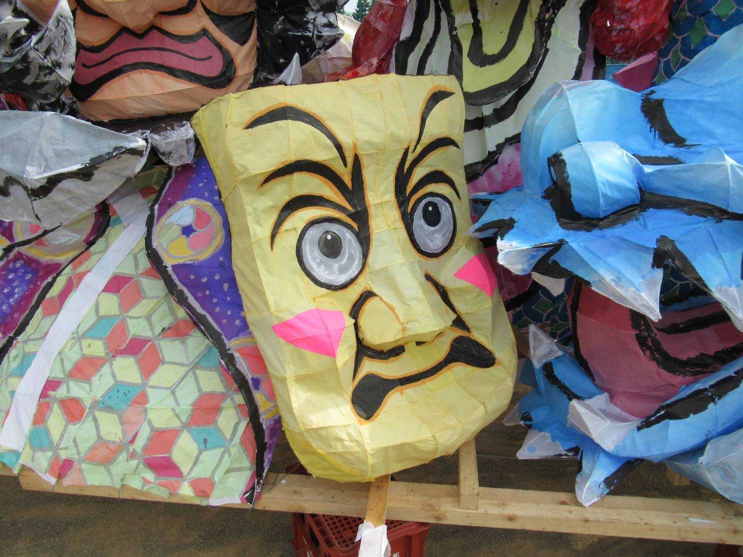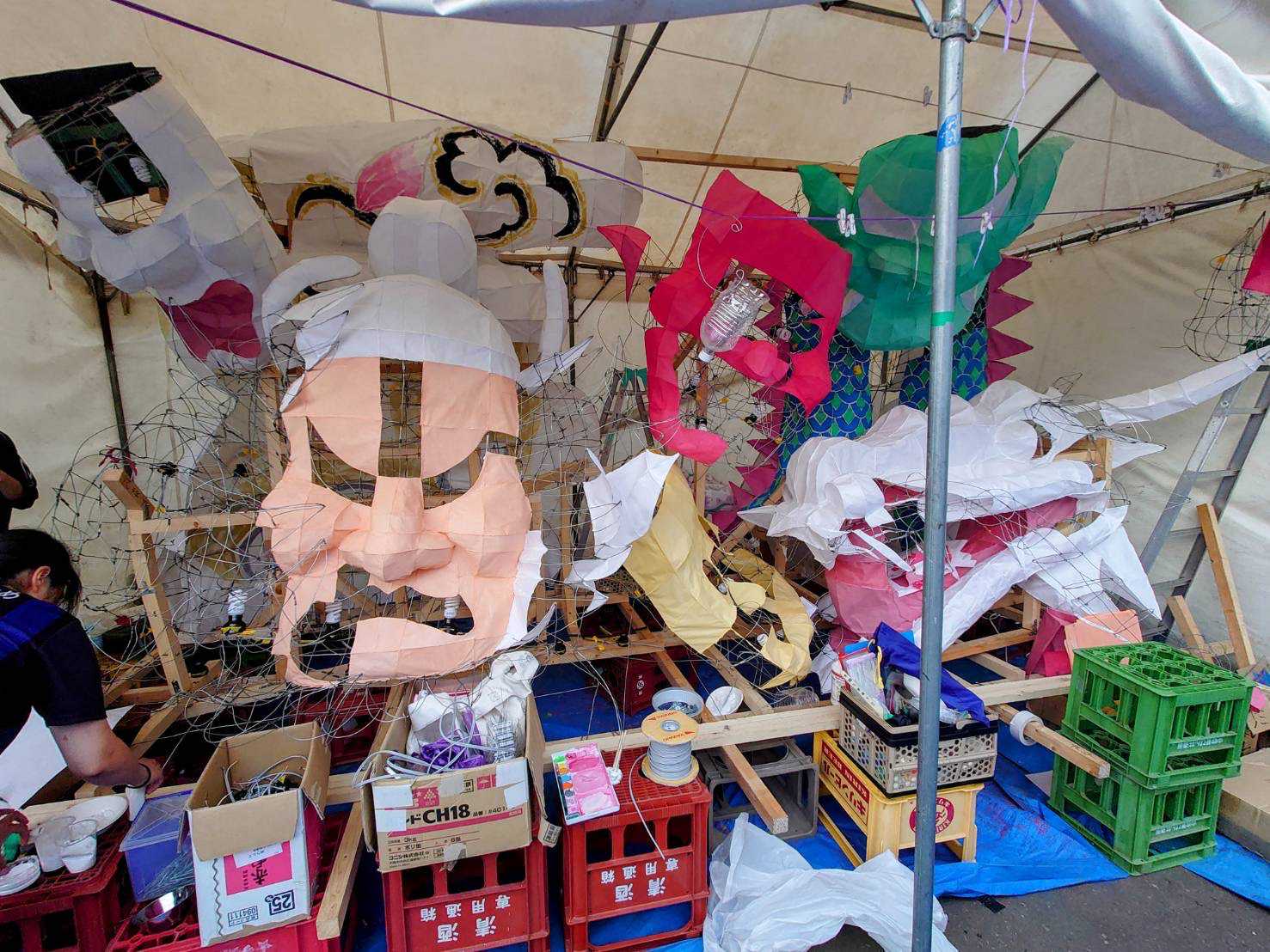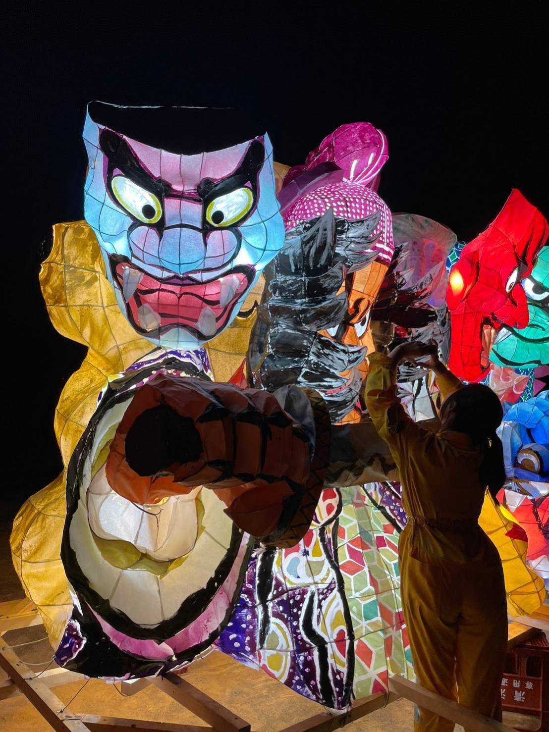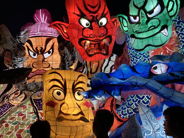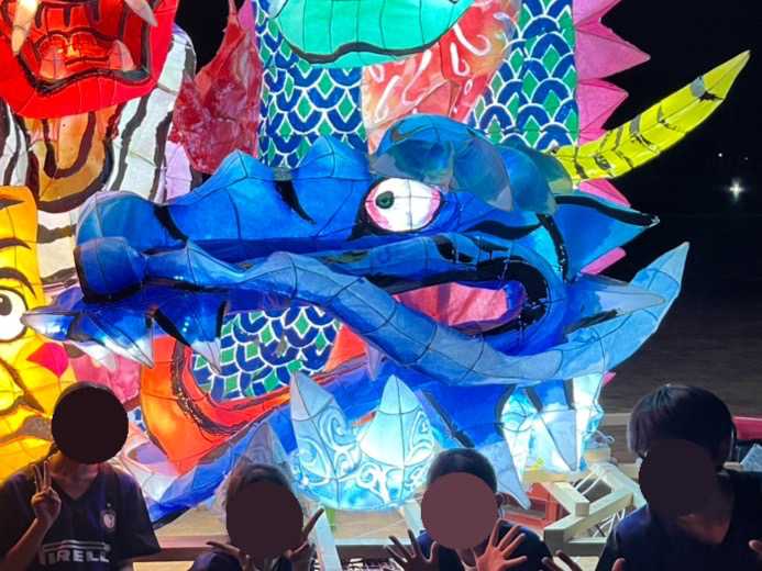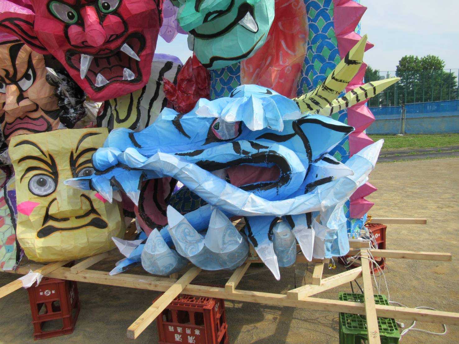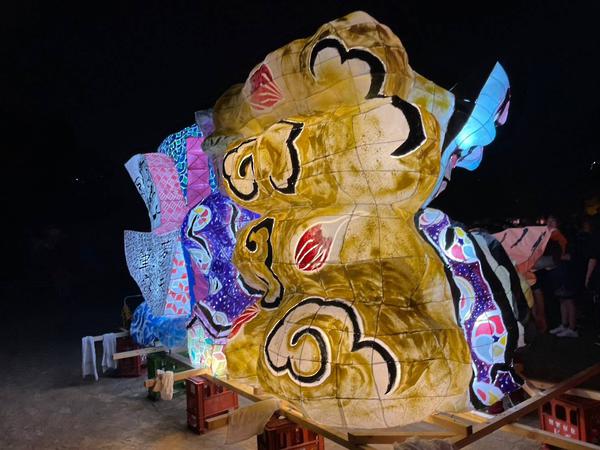 色鮮やかで、5つもある顔もいいし、丁寧に作られているし、一部光らせられなかったところがあるとはいえ納得の大賞だったと思います。 また、実物を見れていないので間違っていたら申し訳ないのですが、前面から見て中央部分が後ろまで空洞になっているんですかね?縦横比がねぶたほどない北高行灯においてこの決断は難しかったんじゃないかと思いますが、これのおかげで中央にある赤い面により立体感を持たせることができているんじゃないかと思います (写真でしか見れていないのでおそらく)。空けすぎるとスカスカになってしまうというリスクがありますがこの行灯はちょうどいいバランスになっていました。表面積も増えるし針金を作り込んだり紙を貼りにくいところも増えるしで難易度が高かったんじゃないかと思います。すごい!