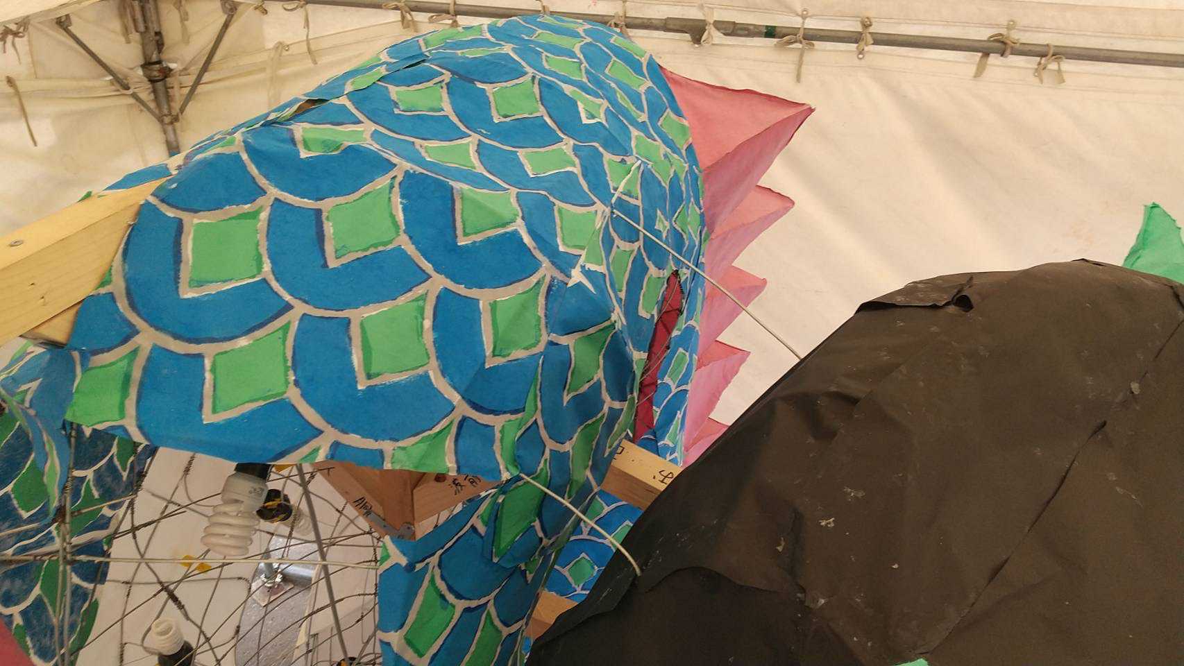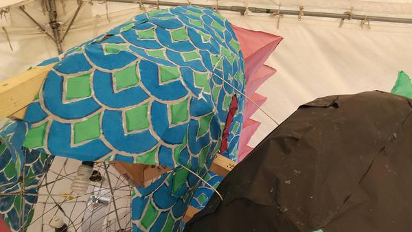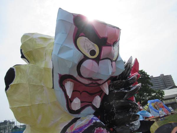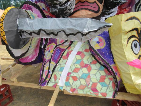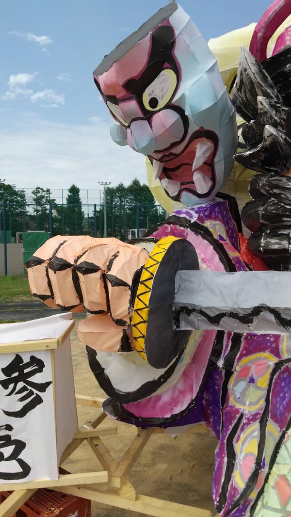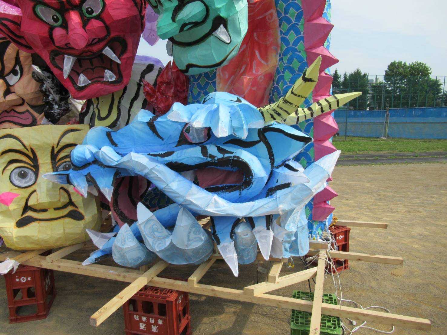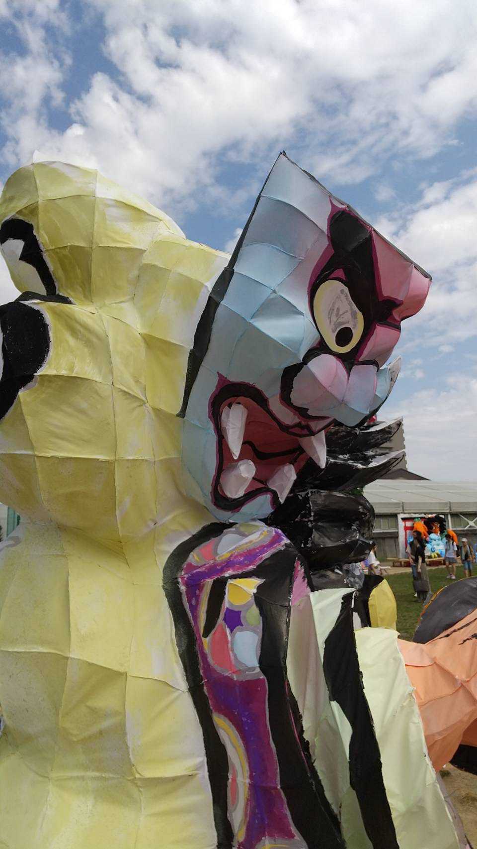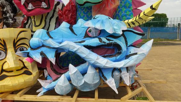 色鮮やかで、5つもある顔もいいし、丁寧に作られているし、一部光らせられなかったところがあるとはいえ納得の大賞だったと思います。 また、実物を見れていないので間違っていたら申し訳ないのですが、前面から見て中央部分が後ろまで空洞になっているんですかね?縦横比がねぶたほどない北高行灯においてこの決断は難しかったんじゃないかと思いますが、これのおかげで中央にある赤い面により立体感を持たせることができているんじゃないかと思います (写真でしか見れていないのでおそらく)。空けすぎるとスカスカになってしまうというリスクがありますがこの行灯はちょうどいいバランスになっていました。表面積も増えるし針金を作り込んだり紙を貼りにくいところも増えるしで難易度が高かったんじゃないかと思います。すごい!