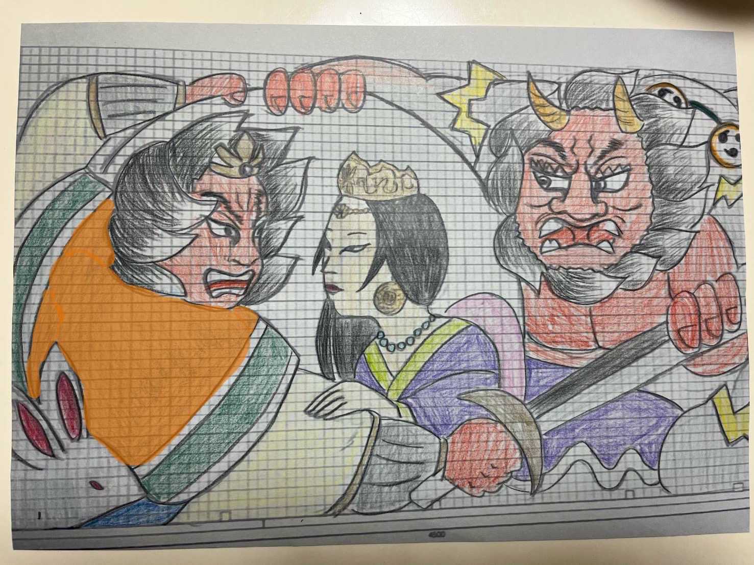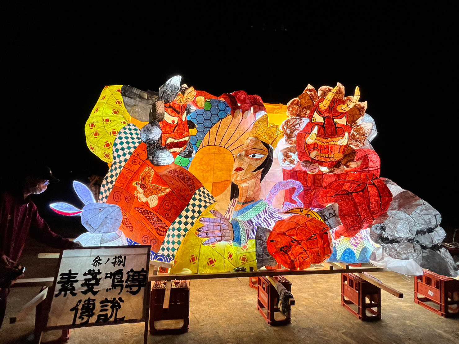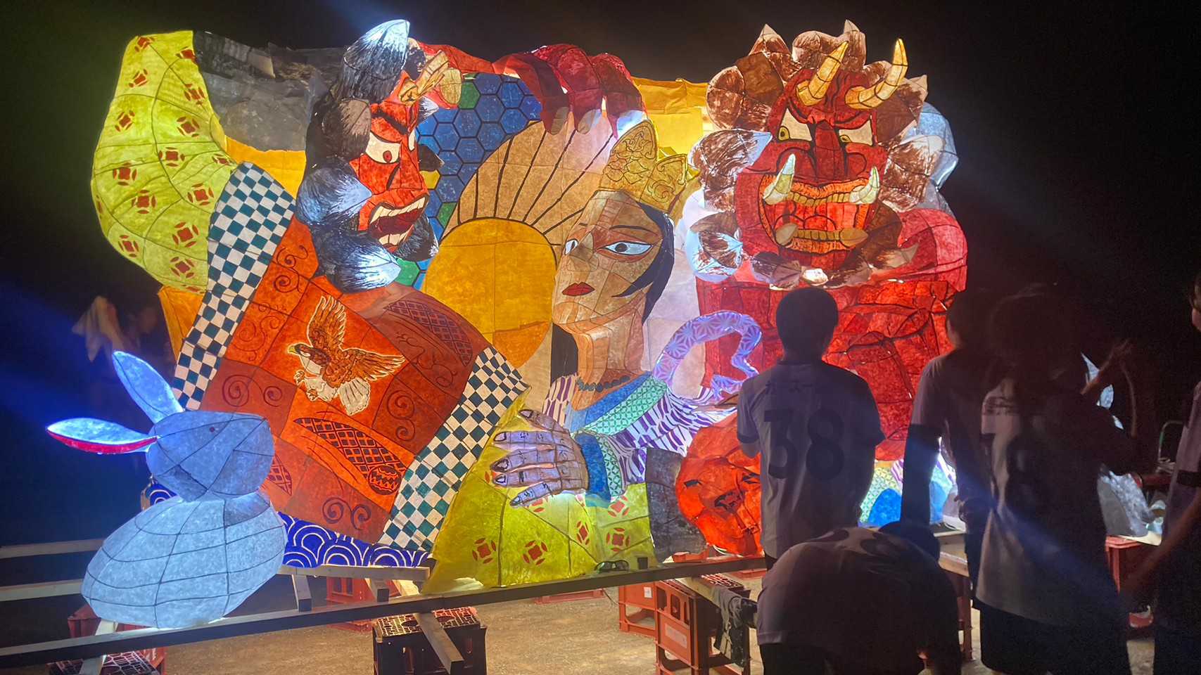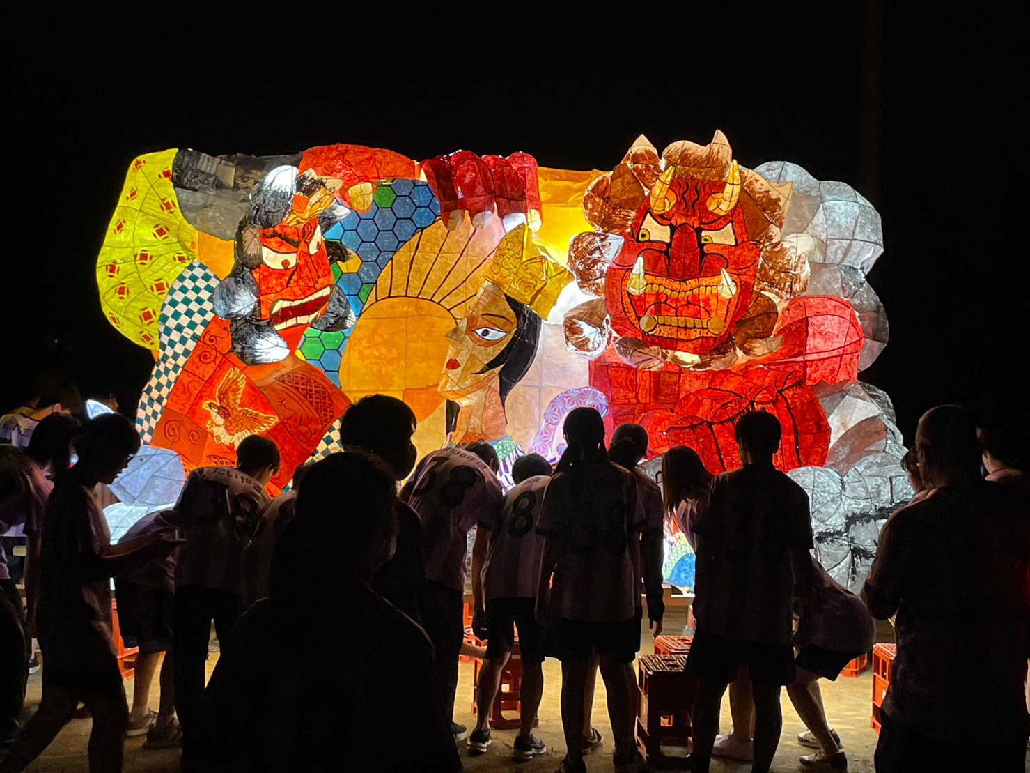 最近の行灯事情に疎いのですがLEDテープは一般的になったのでしょうか?もしそうでないならナイスチャレンジです!北高でもLEDテープが使えるということを証明したと思います。 下絵がアップロードされていると背景が気になってしまうたちなのですが、この行灯も例に漏れず気になるので紹介文お待ちしています。特に人間と鬼が持っている丸い物体が気になります。