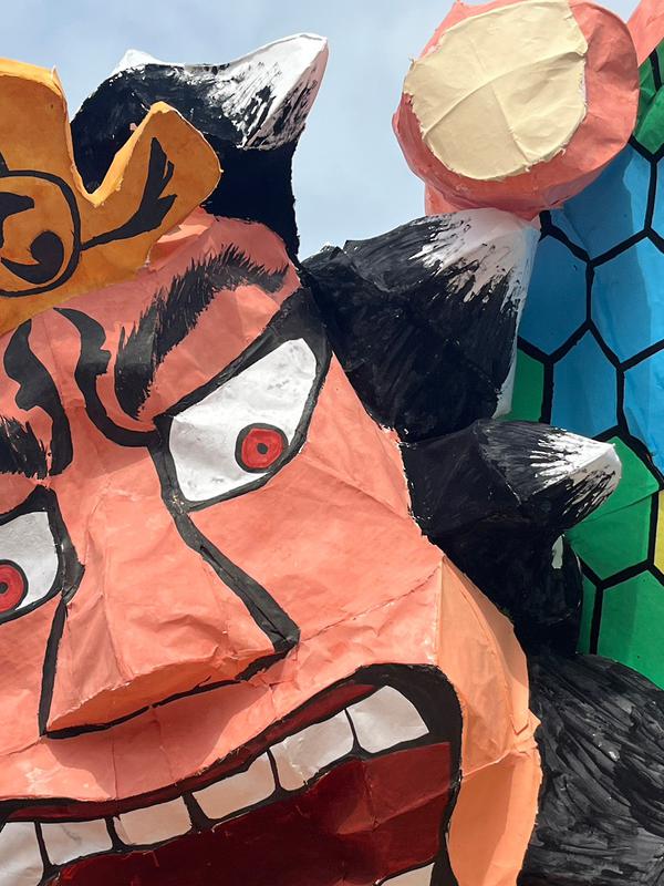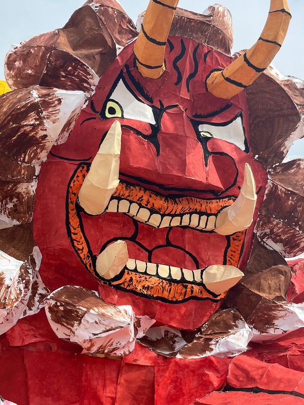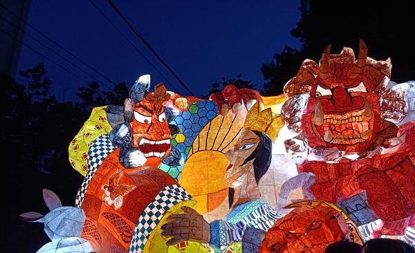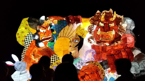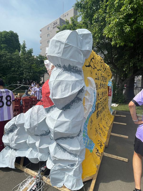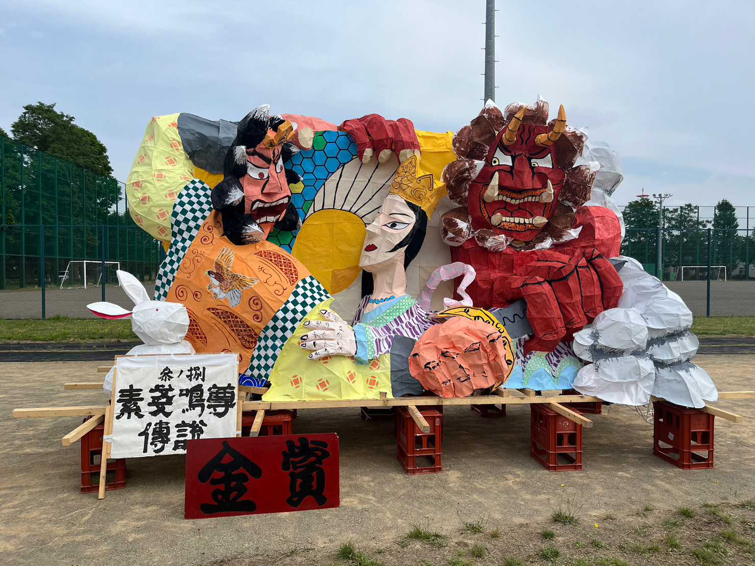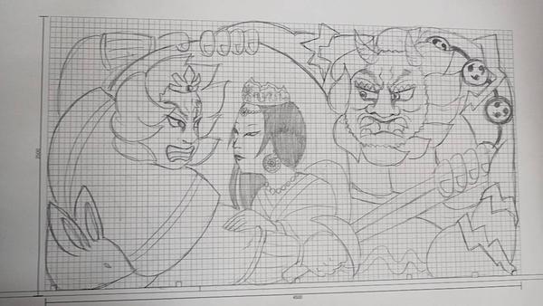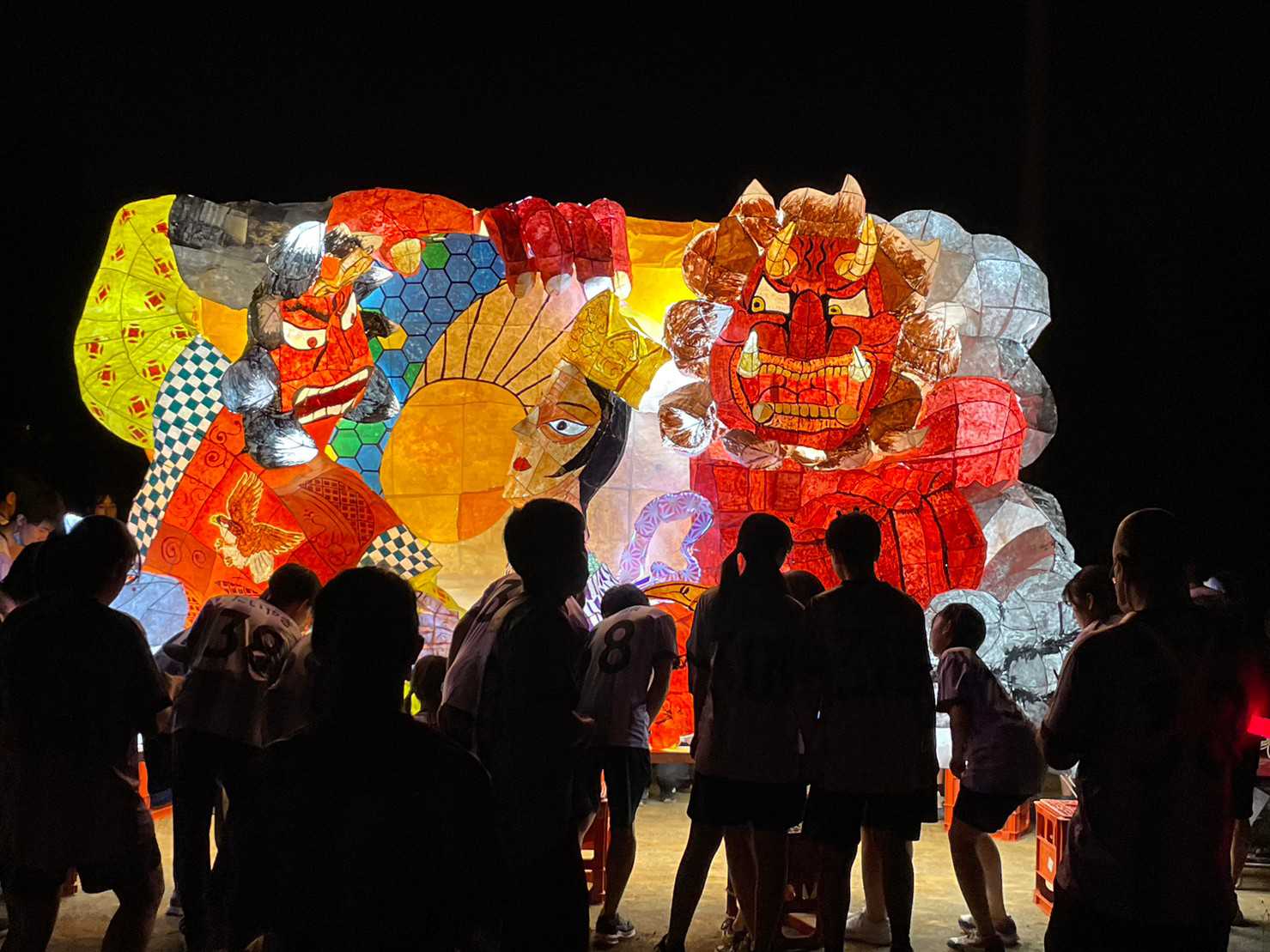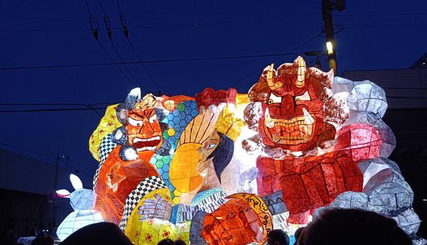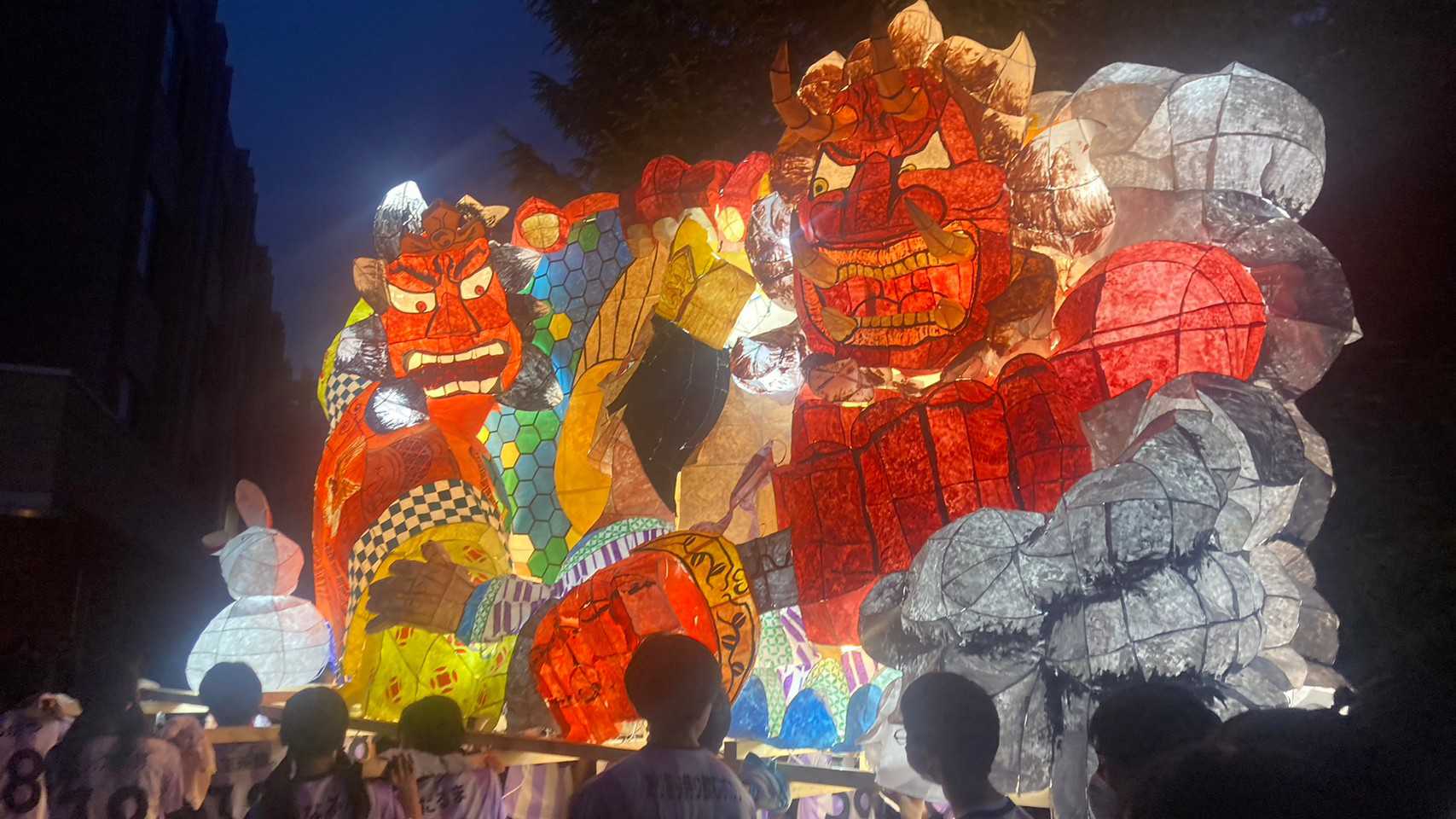 最近の行灯事情に疎いのですがLEDテープは一般的になったのでしょうか?もしそうでないならナイスチャレンジです!北高でもLEDテープが使えるということを証明したと思います。 下絵がアップロードされていると背景が気になってしまうたちなのですが、この行灯も例に漏れず気になるので紹介文お待ちしています。特に人間と鬼が持っている丸い物体が気になります。