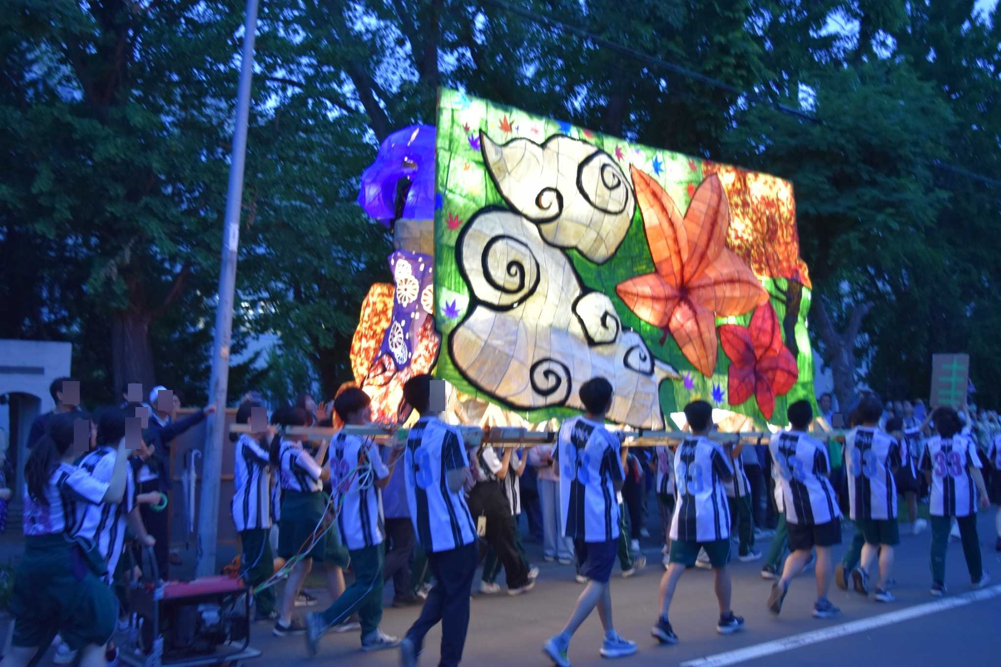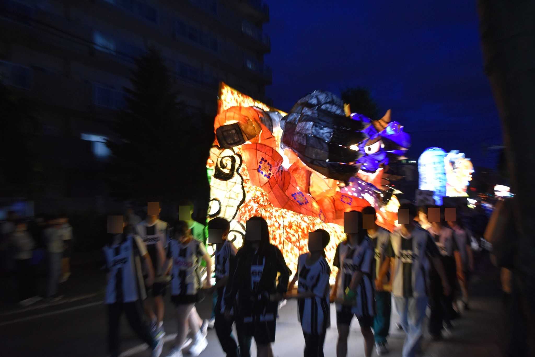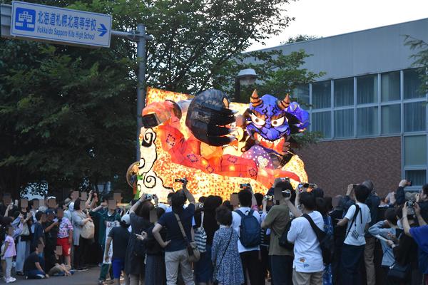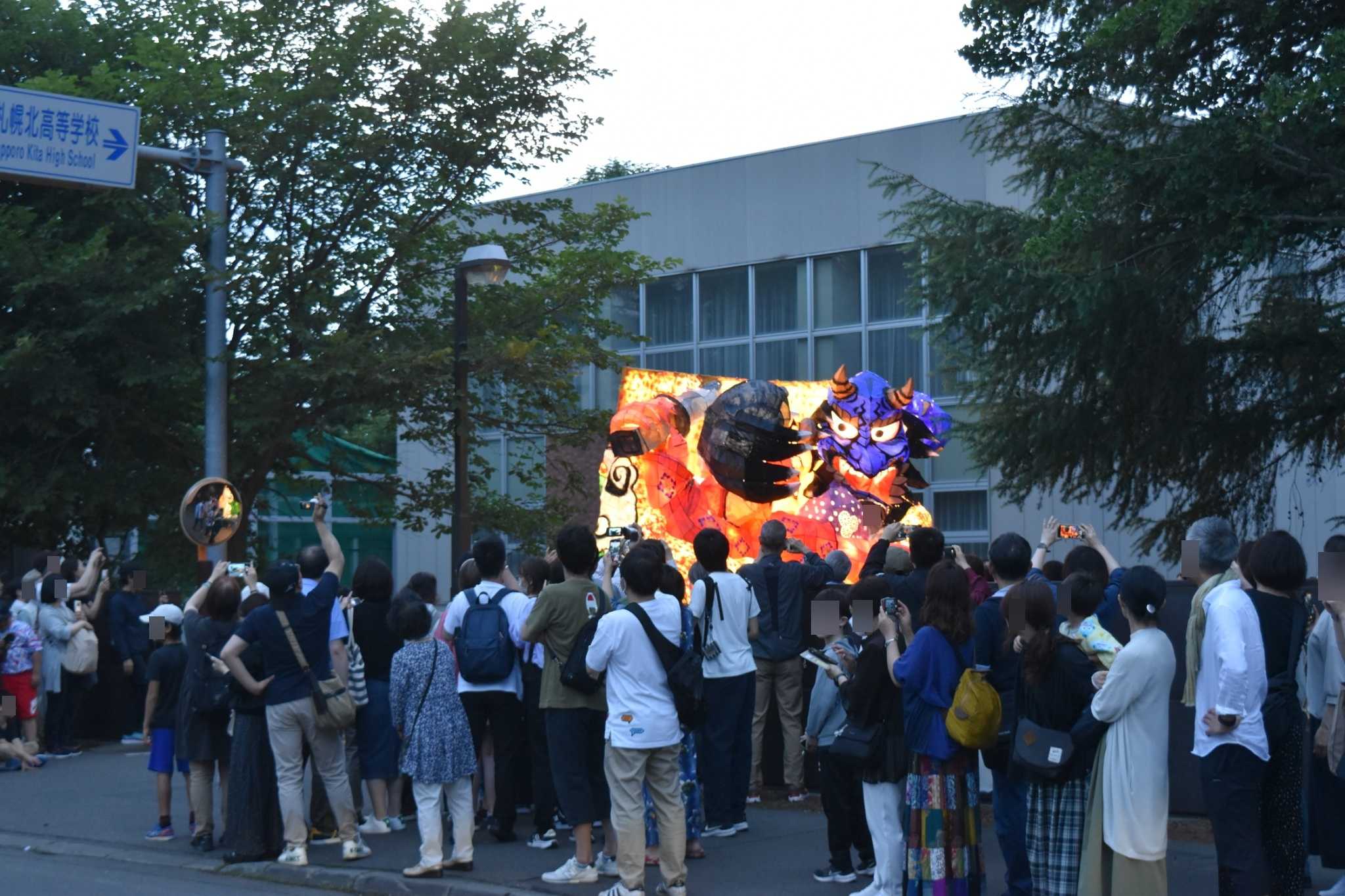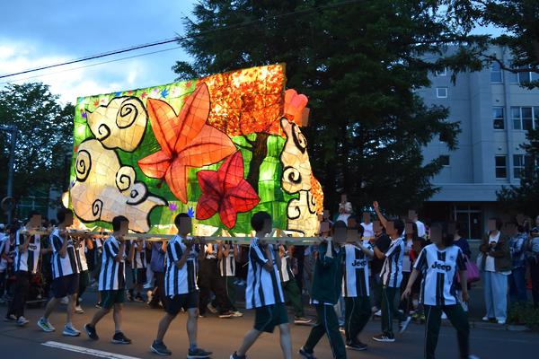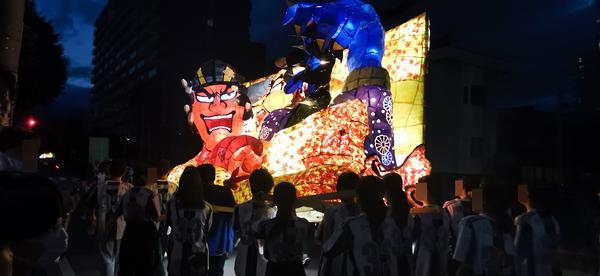 裏の壁も鮮やかですね。単なる壁かと思いきや横を通して前面の紅葉とつながっており、包みこむように作られているところに工夫を感じました。これなら壁のデメリット (行灯本体と分断されること) も抑えられていいなと感心しました。