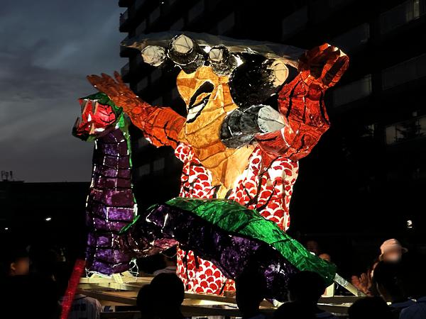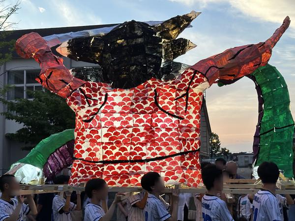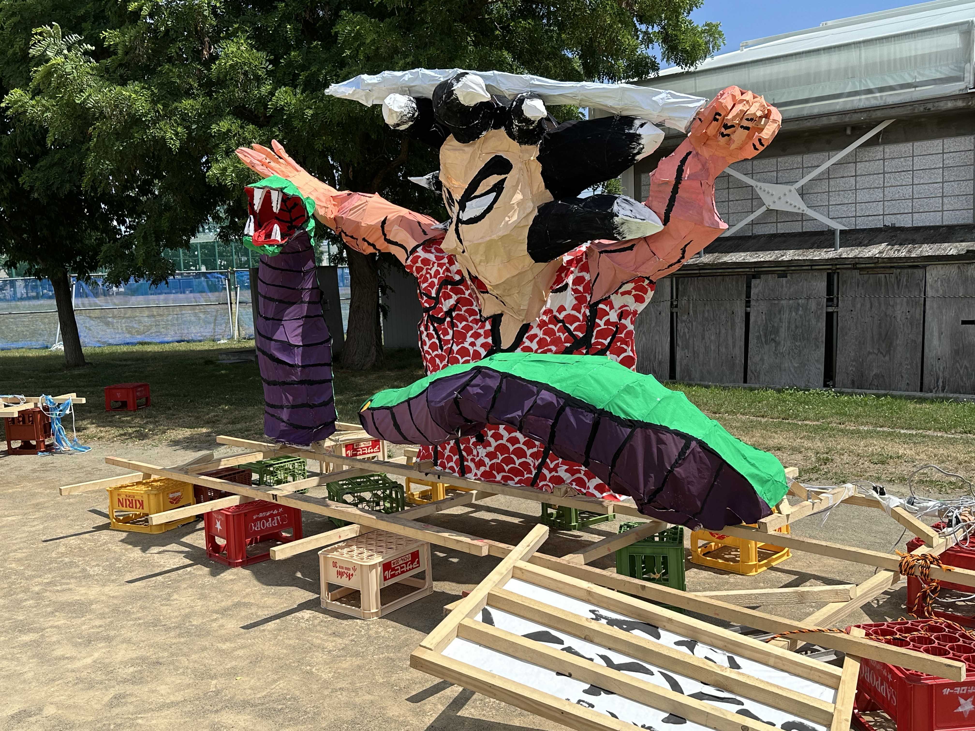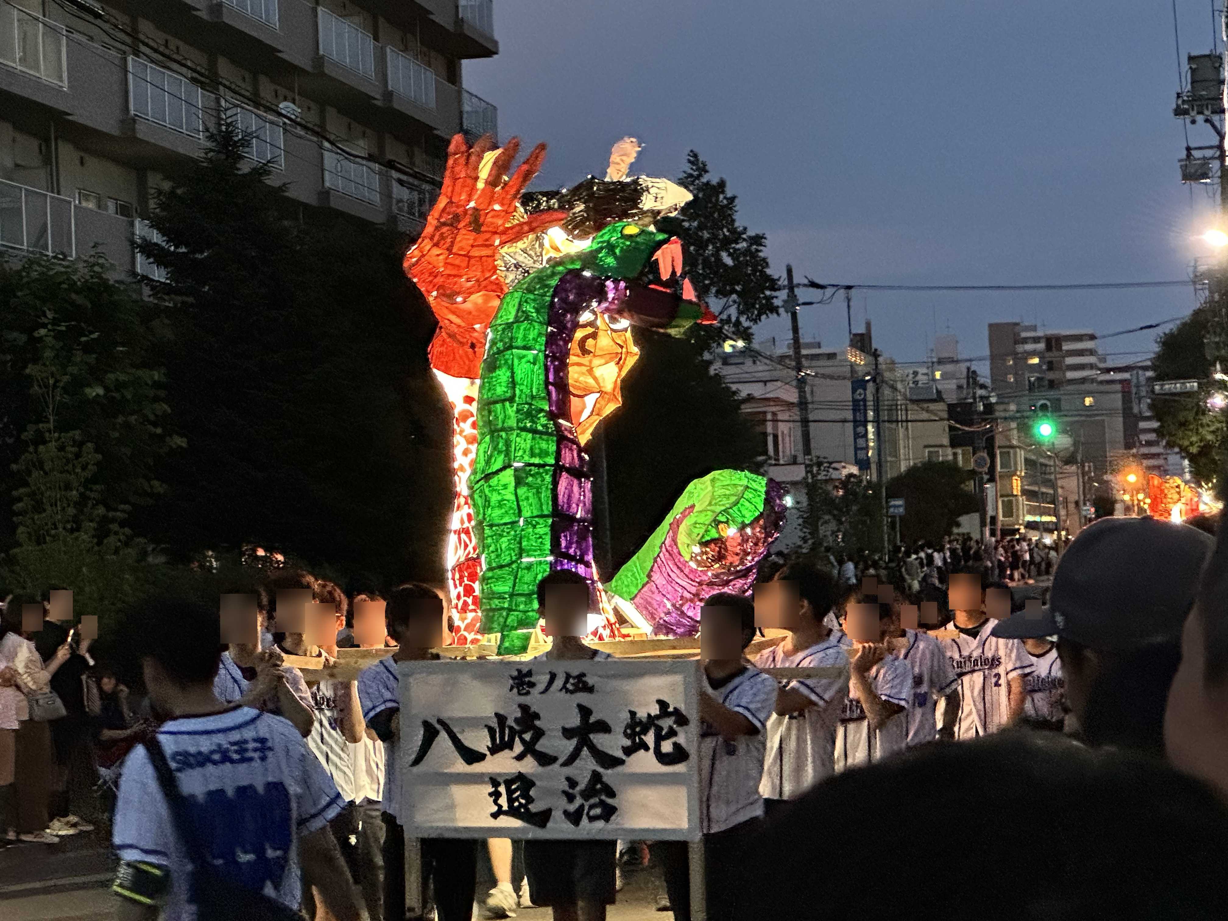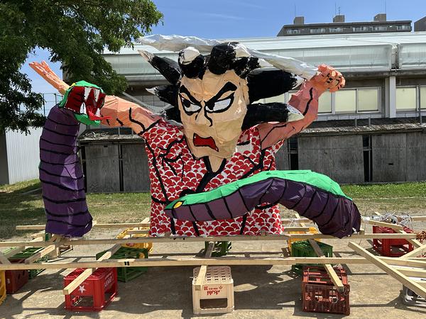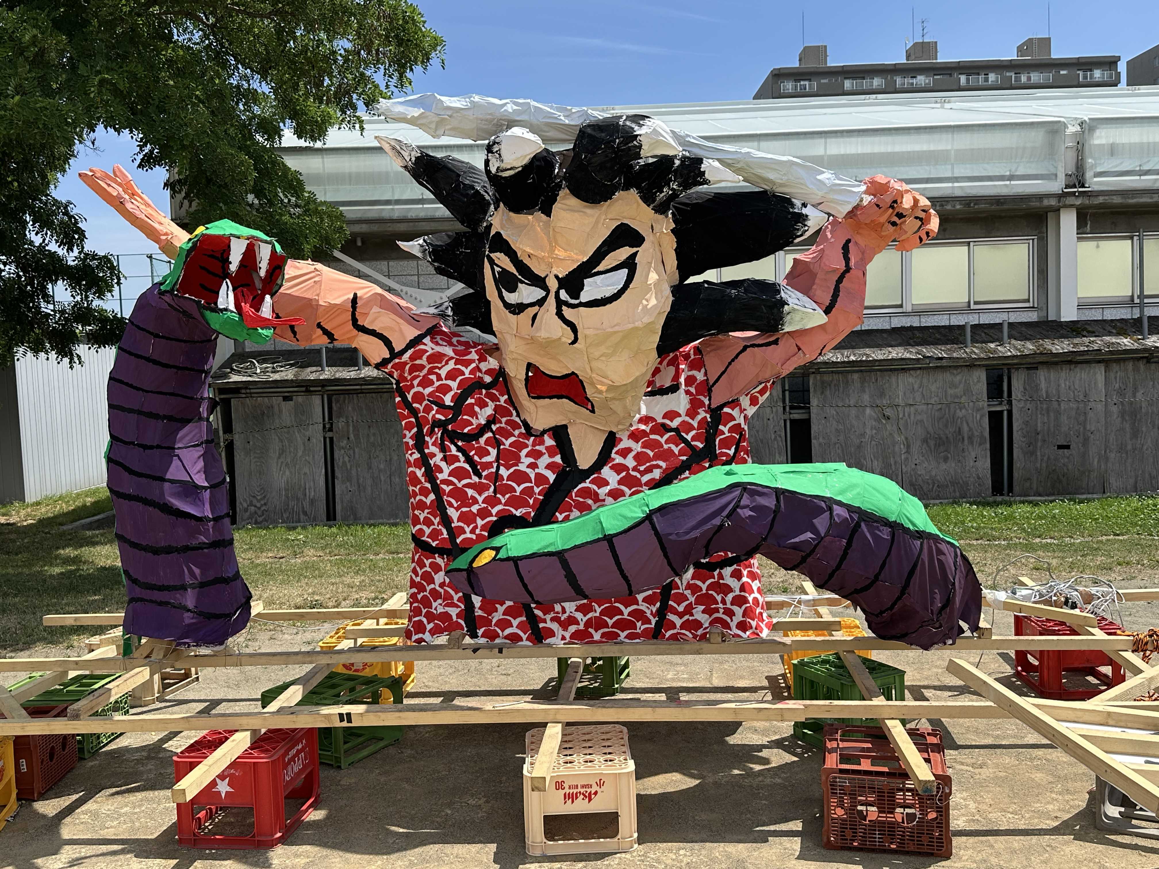 本年は巳年ということで、日本書紀に登場する名高いエピソード、須佐男の命によるヤマタノオロチ退治の場面を作品にしました。鋭い剣を手に果敢に立ち向かう須佐男の命と眼光鋭く睨みつけるヤマタノオロチに注目してご覧ください。
