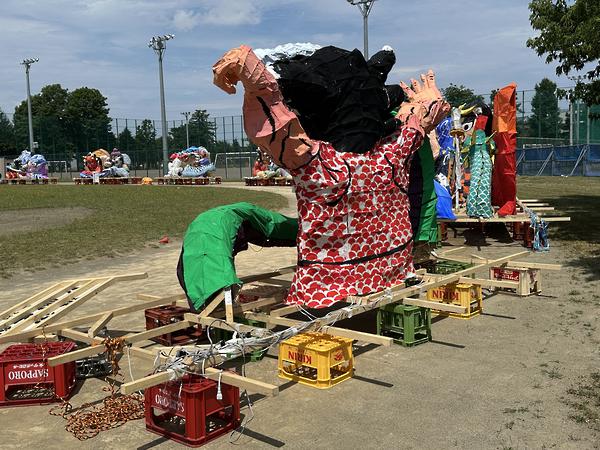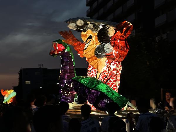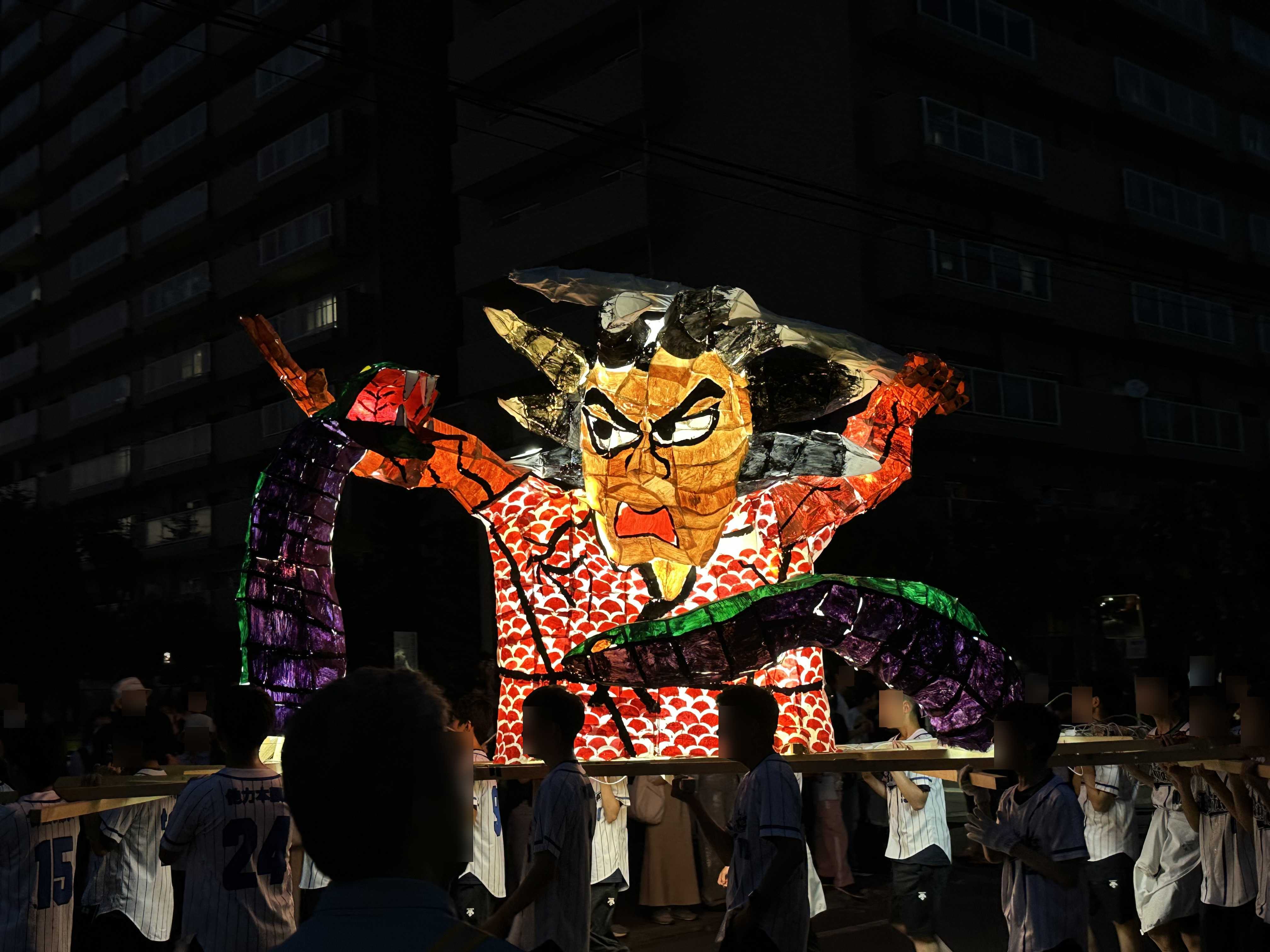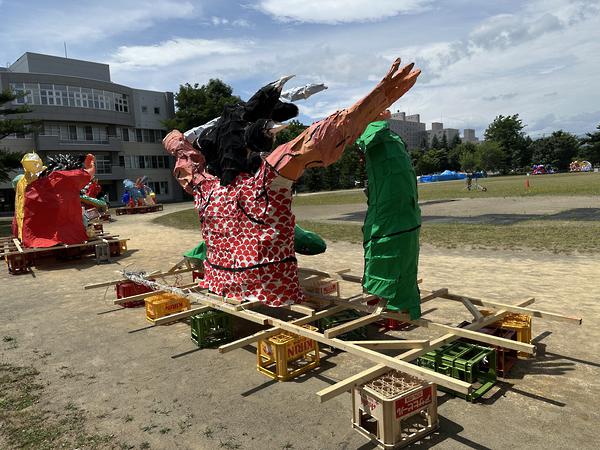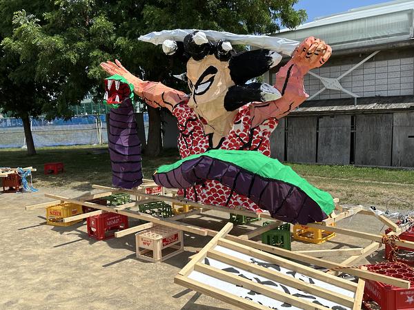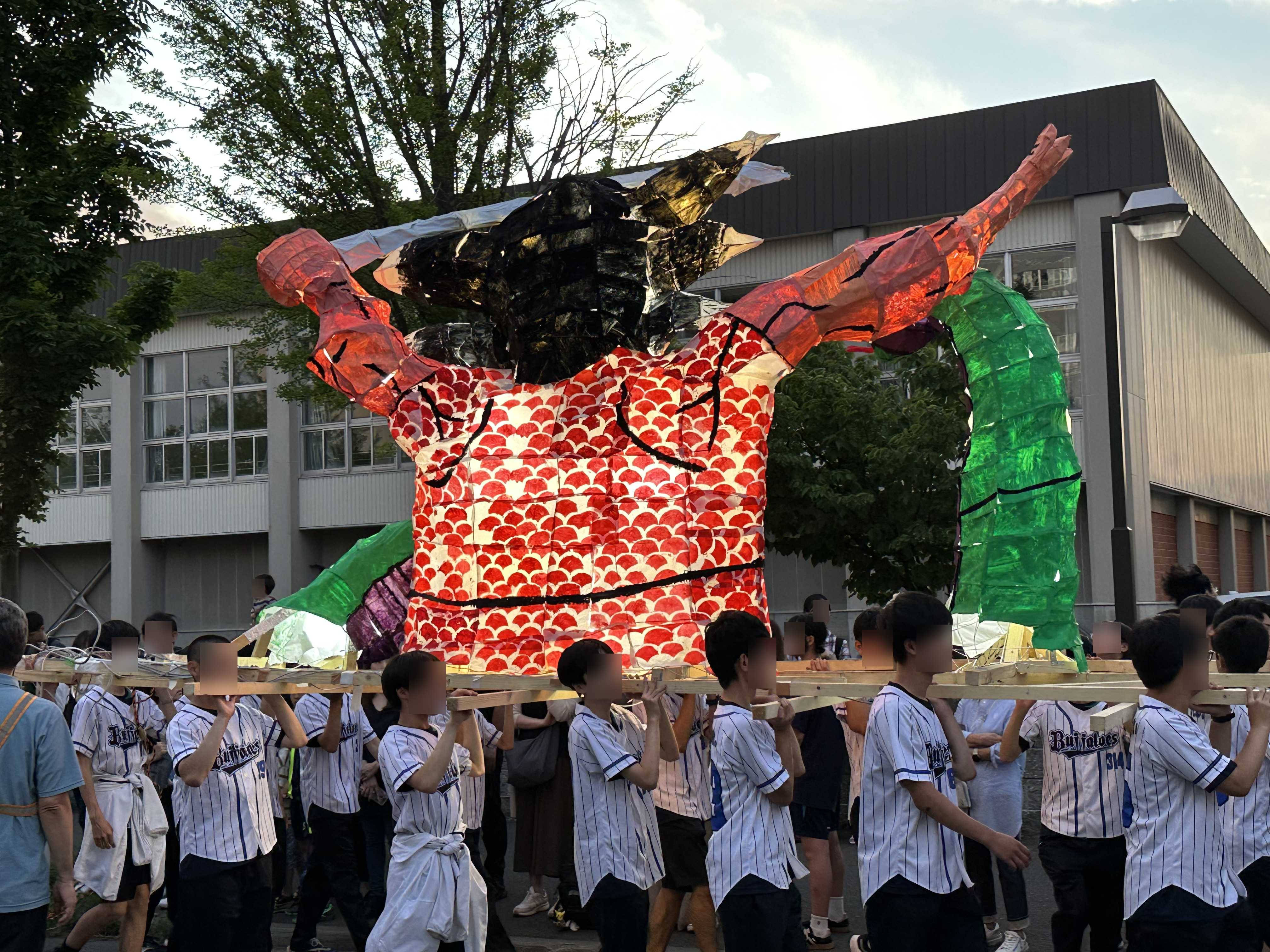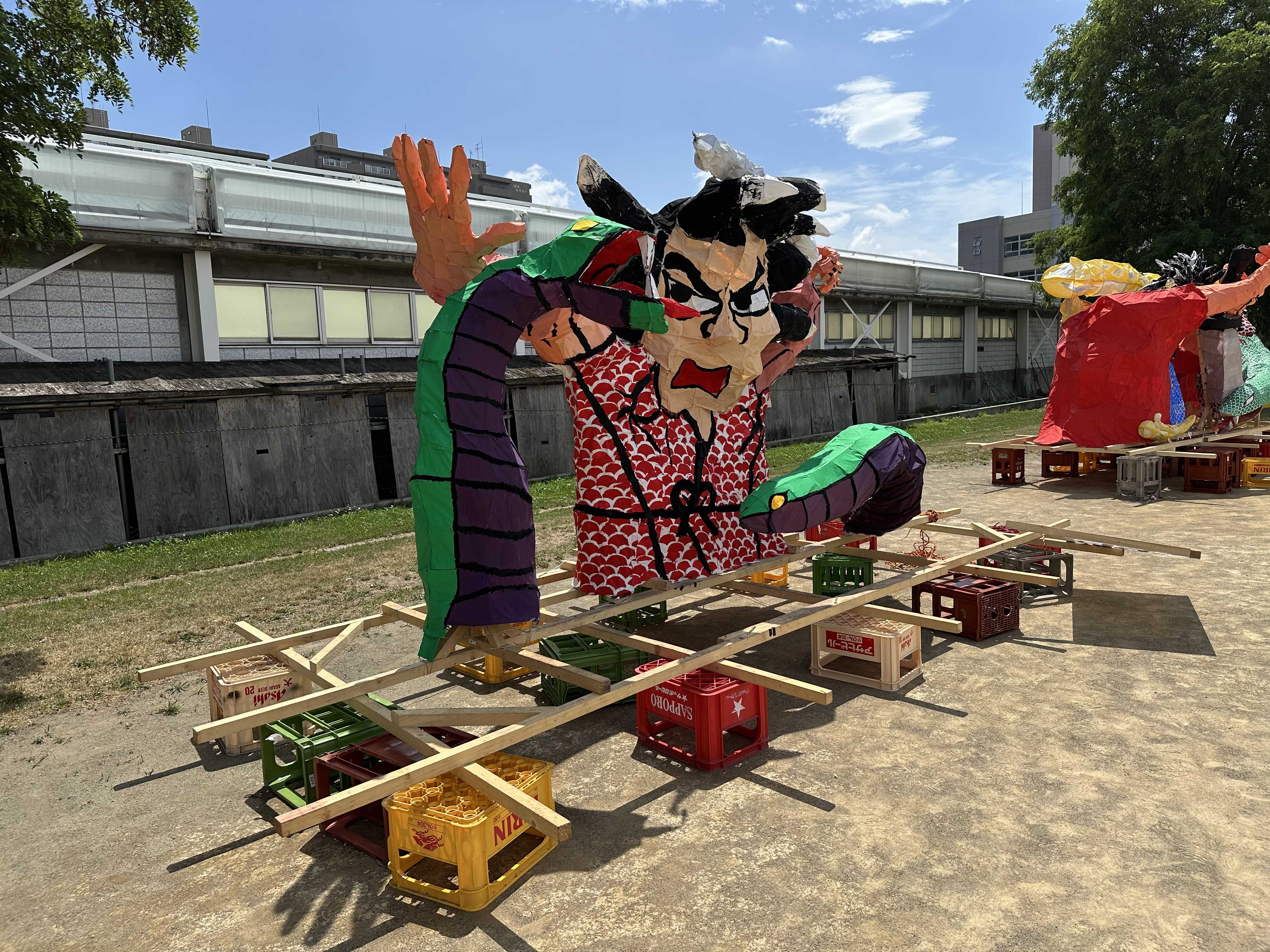本年は巳年ということで、日本書紀に登場する名高いエピソード、須佐男の命によるヤマタノオロチ退治の場面を作品にしました。鋭い剣を手に果敢に立ち向かう須佐男の命と眼光鋭く睨みつけるヤマタノオロチに注目してご覧ください。
