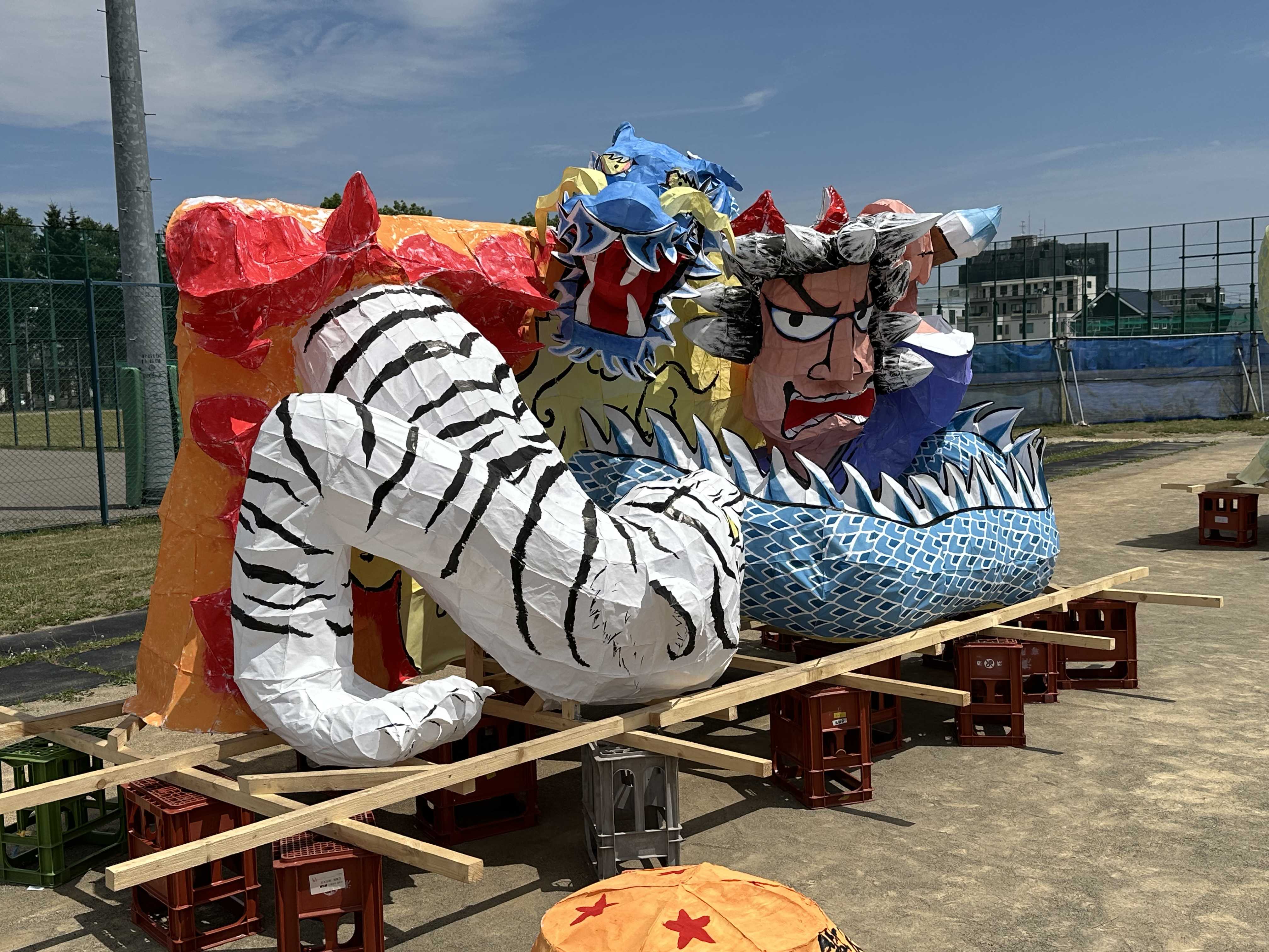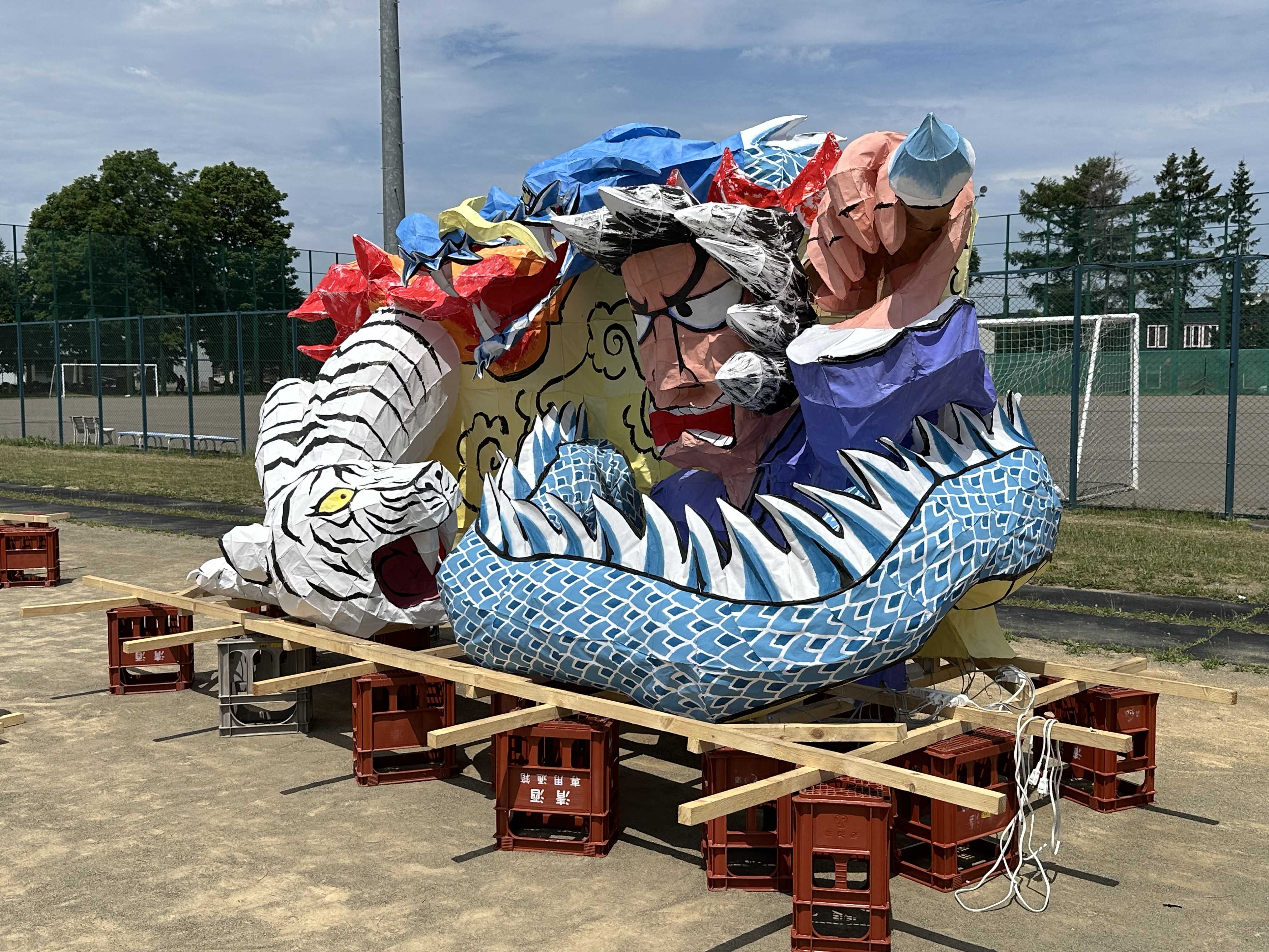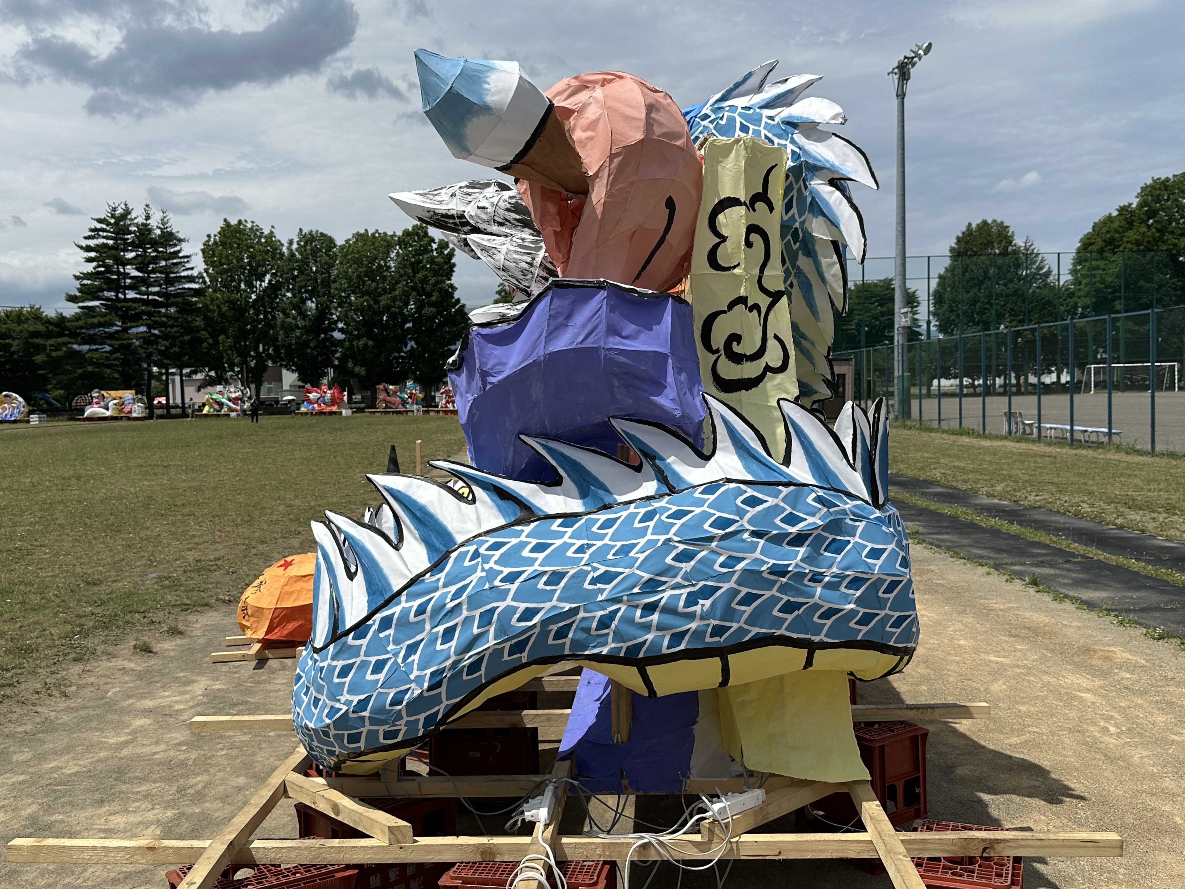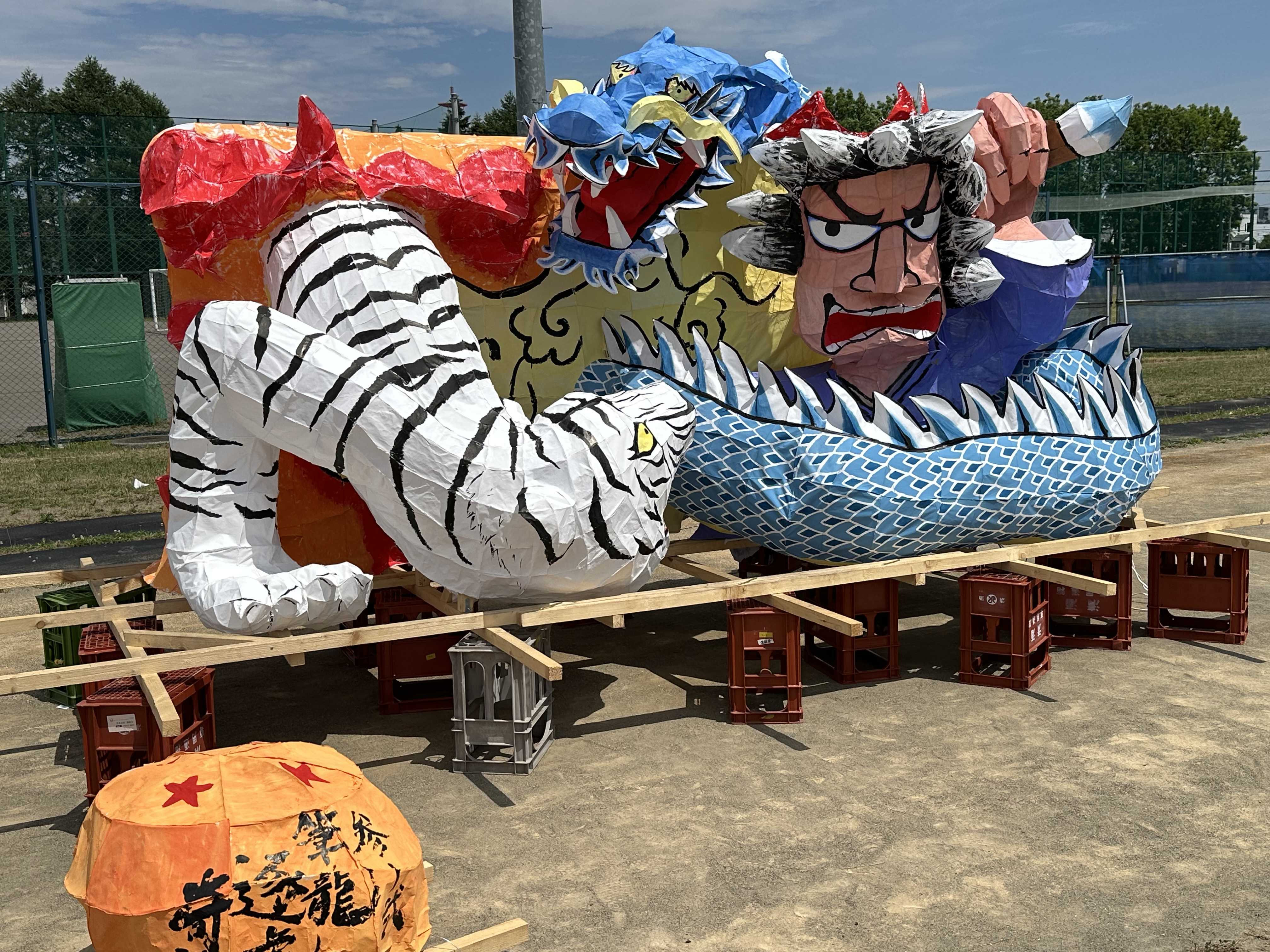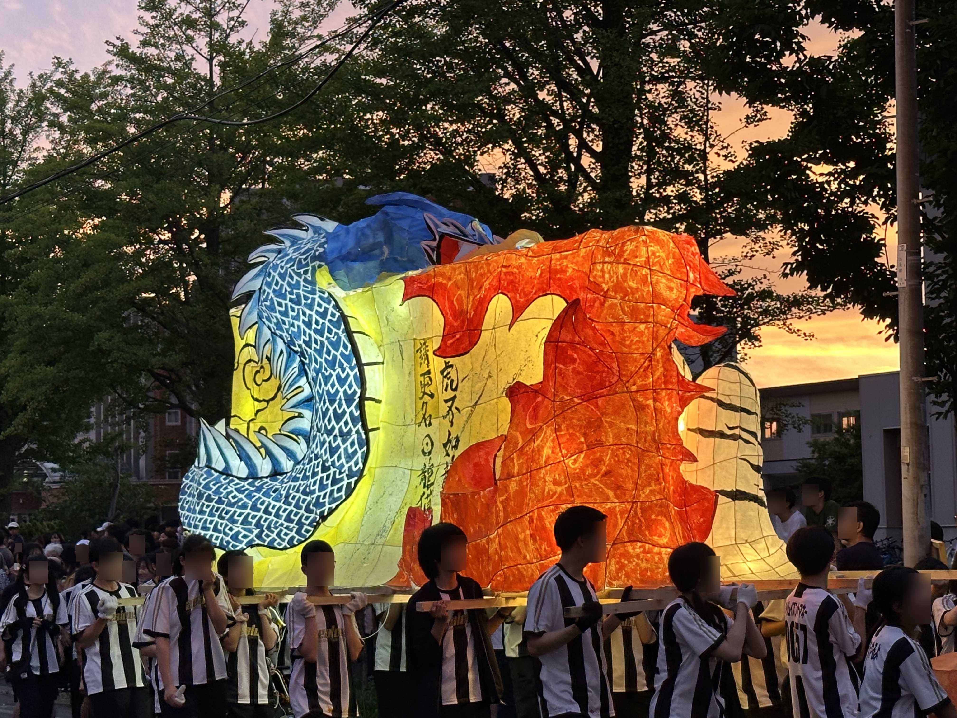 龍がかっこいい!特に後ろから見たときの龍のうねり具合がかっこよくて好きです。龍の背びれをきちんと作るところは珍しいのですがこちらの行灯は上手く作られていましたし、背びれの先が細くなりがちなのにどれも光っていたので電飾も素晴らしかったです。