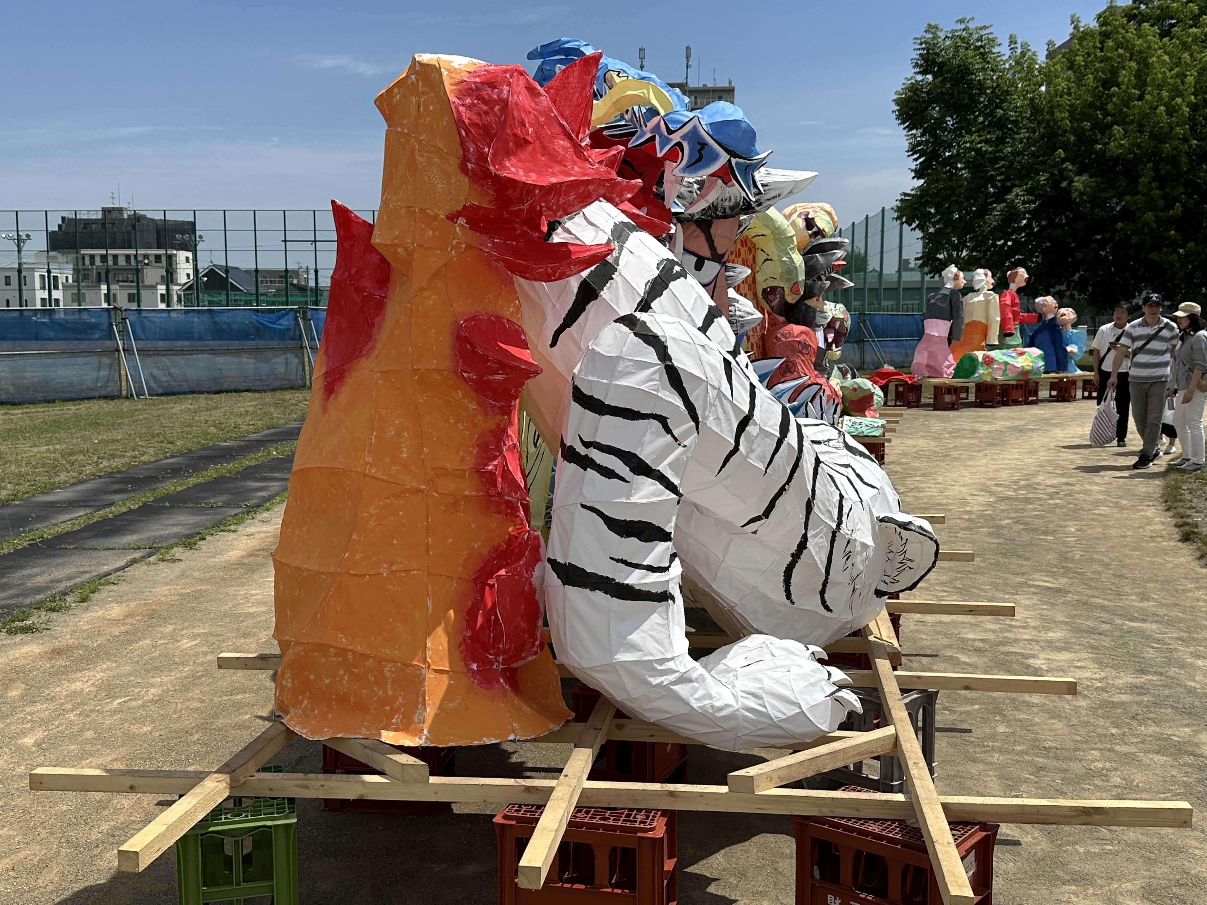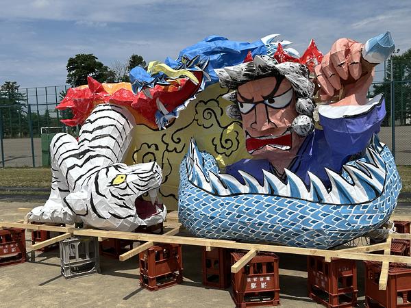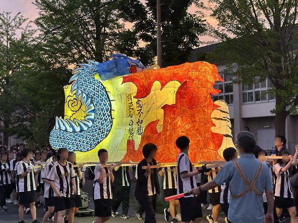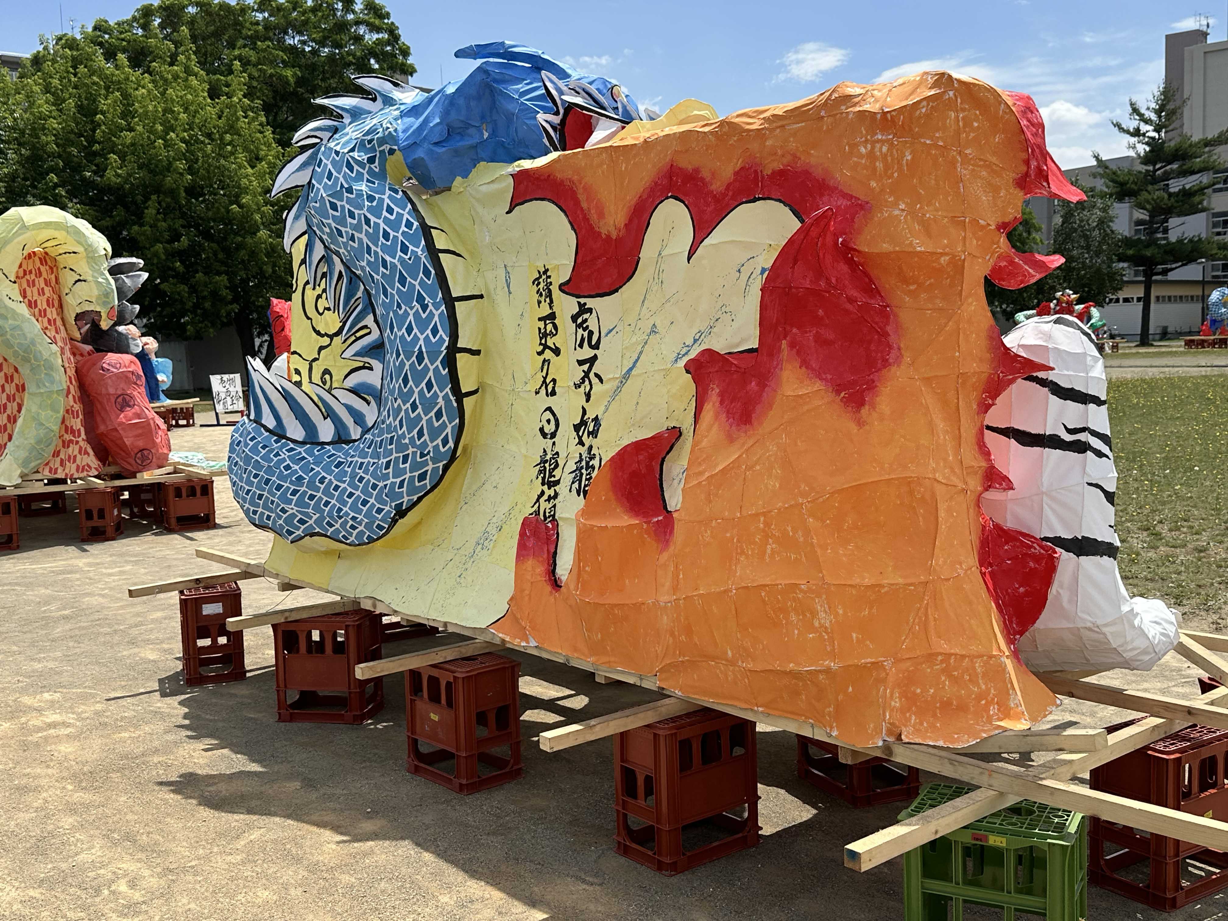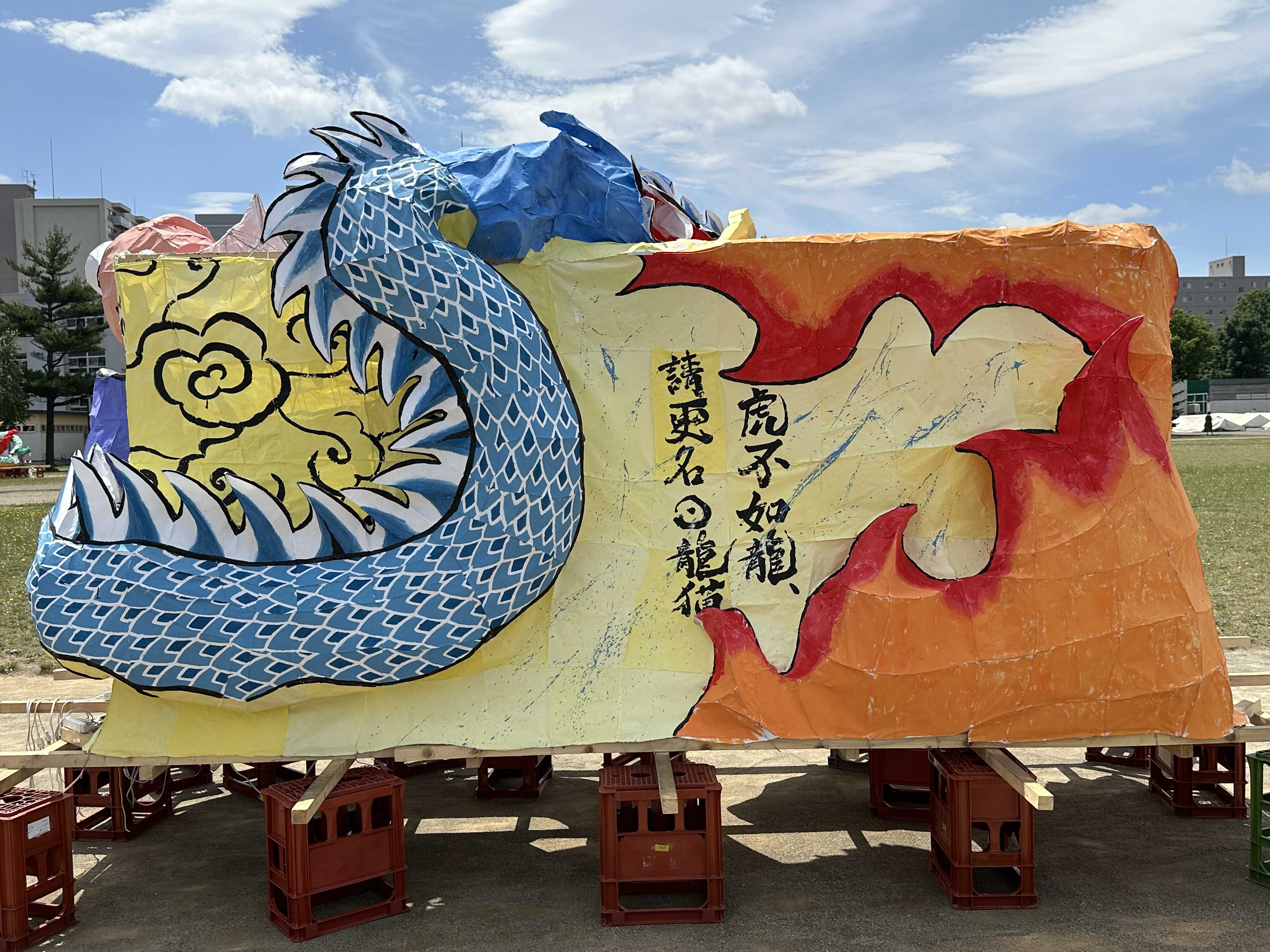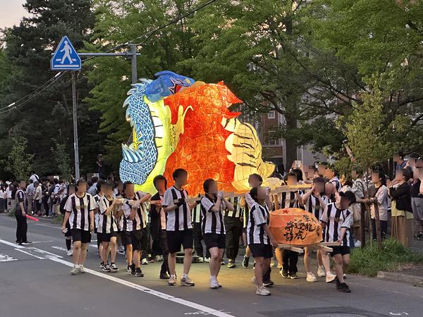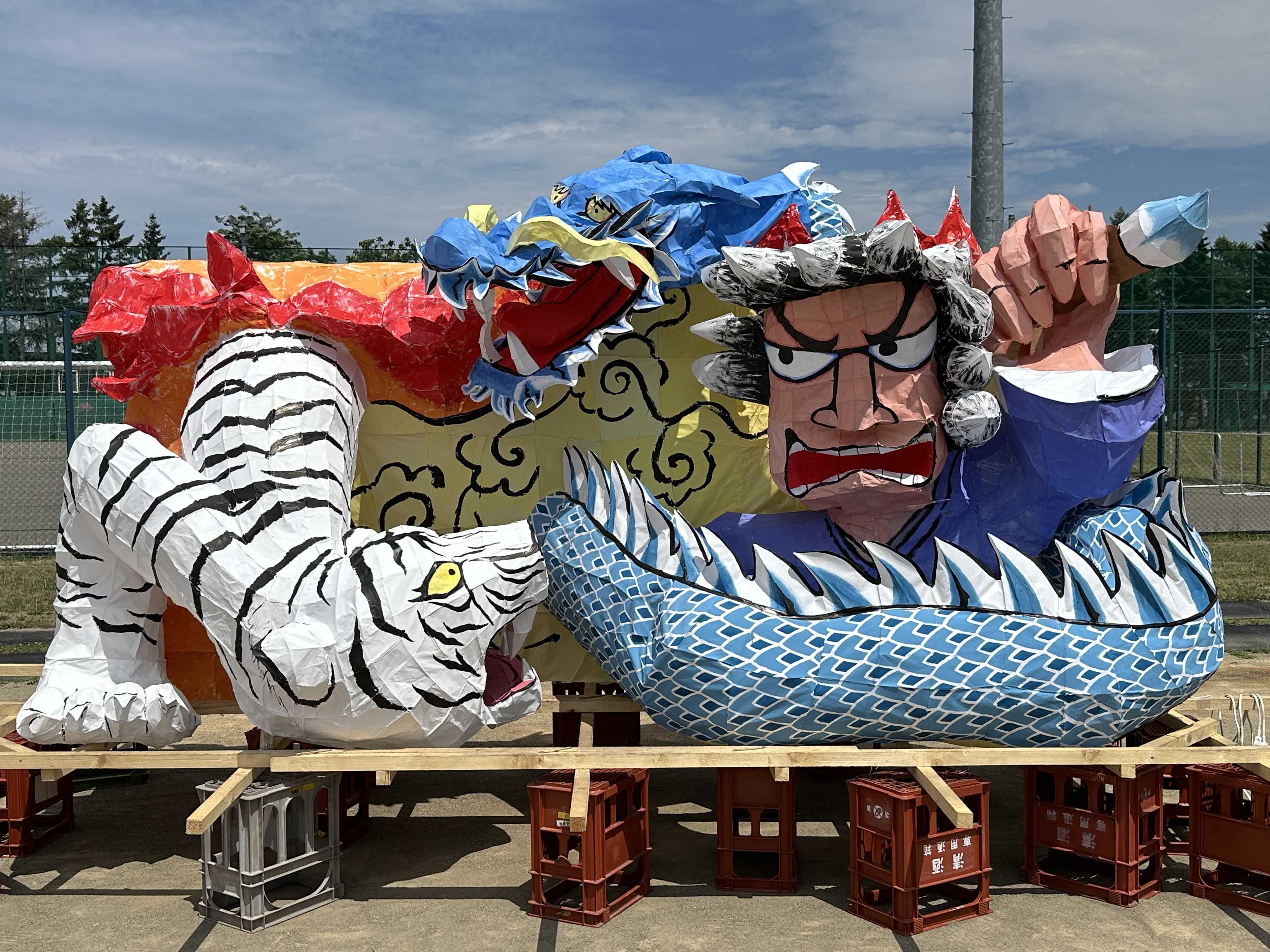 龍がかっこいい!特に後ろから見たときの龍のうねり具合がかっこよくて好きです。龍の背びれをきちんと作るところは珍しいのですがこちらの行灯は上手く作られていましたし、背びれの先が細くなりがちなのにどれも光っていたので電飾も素晴らしかったです。