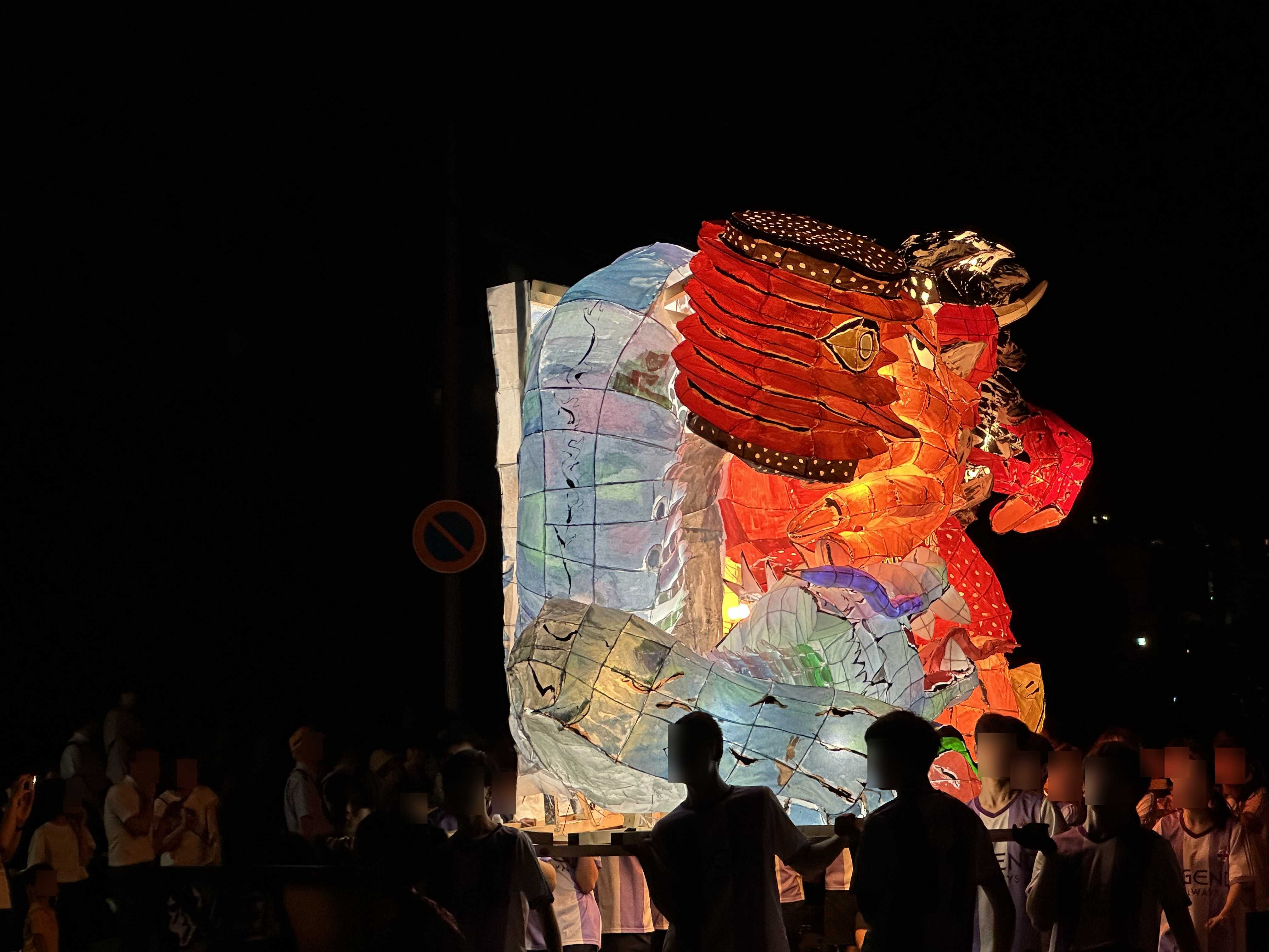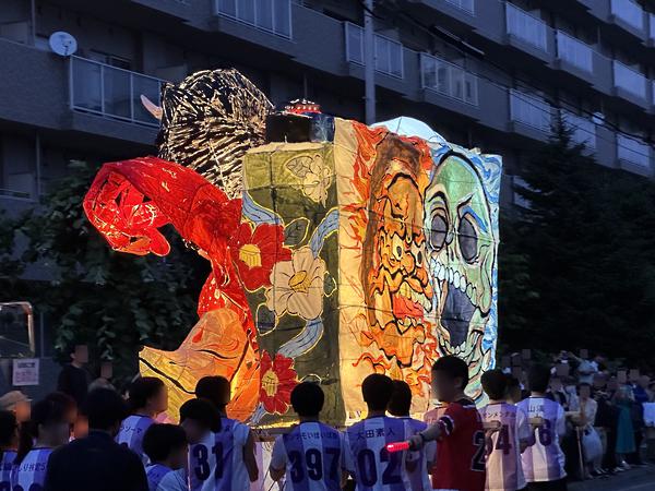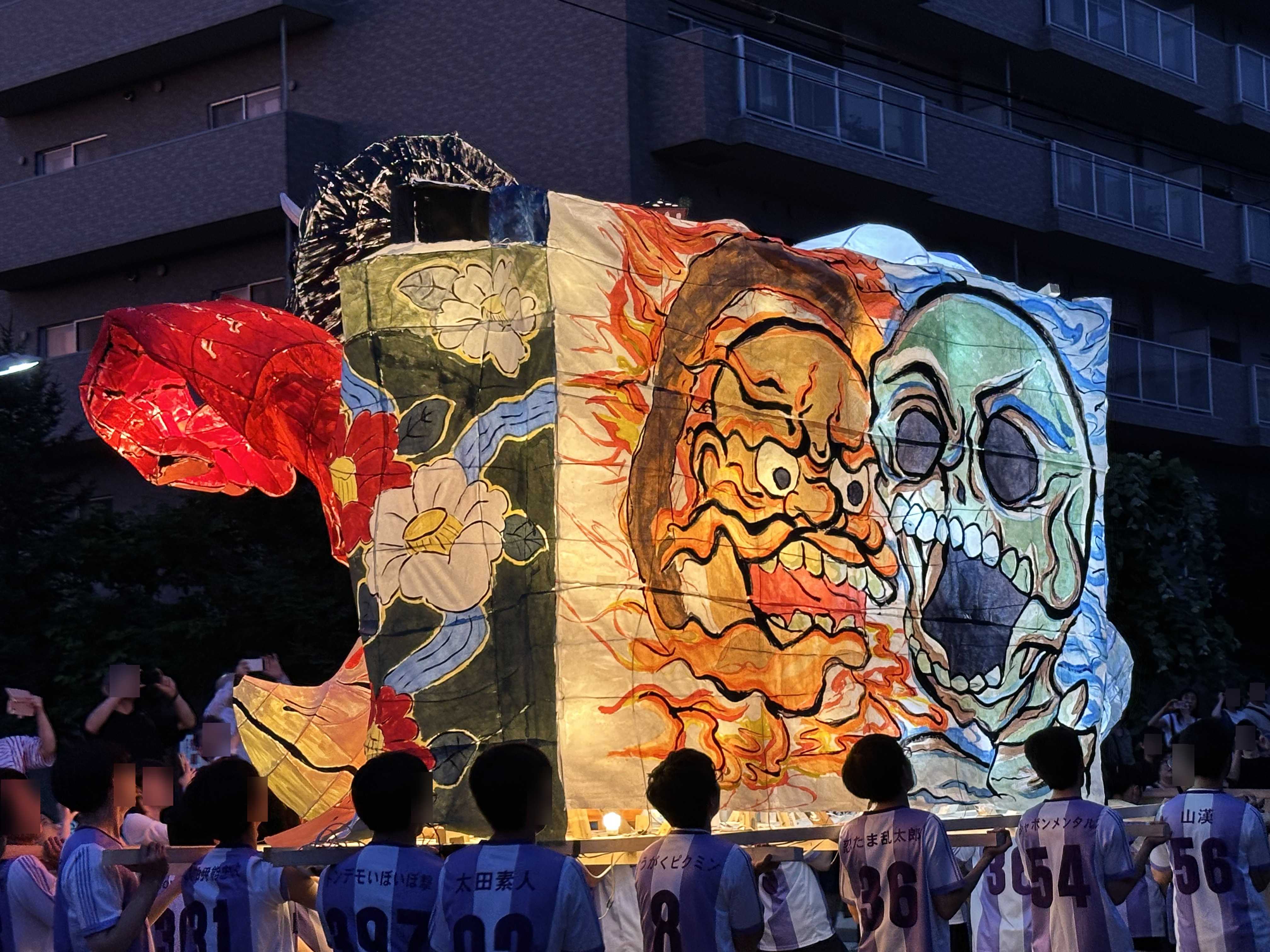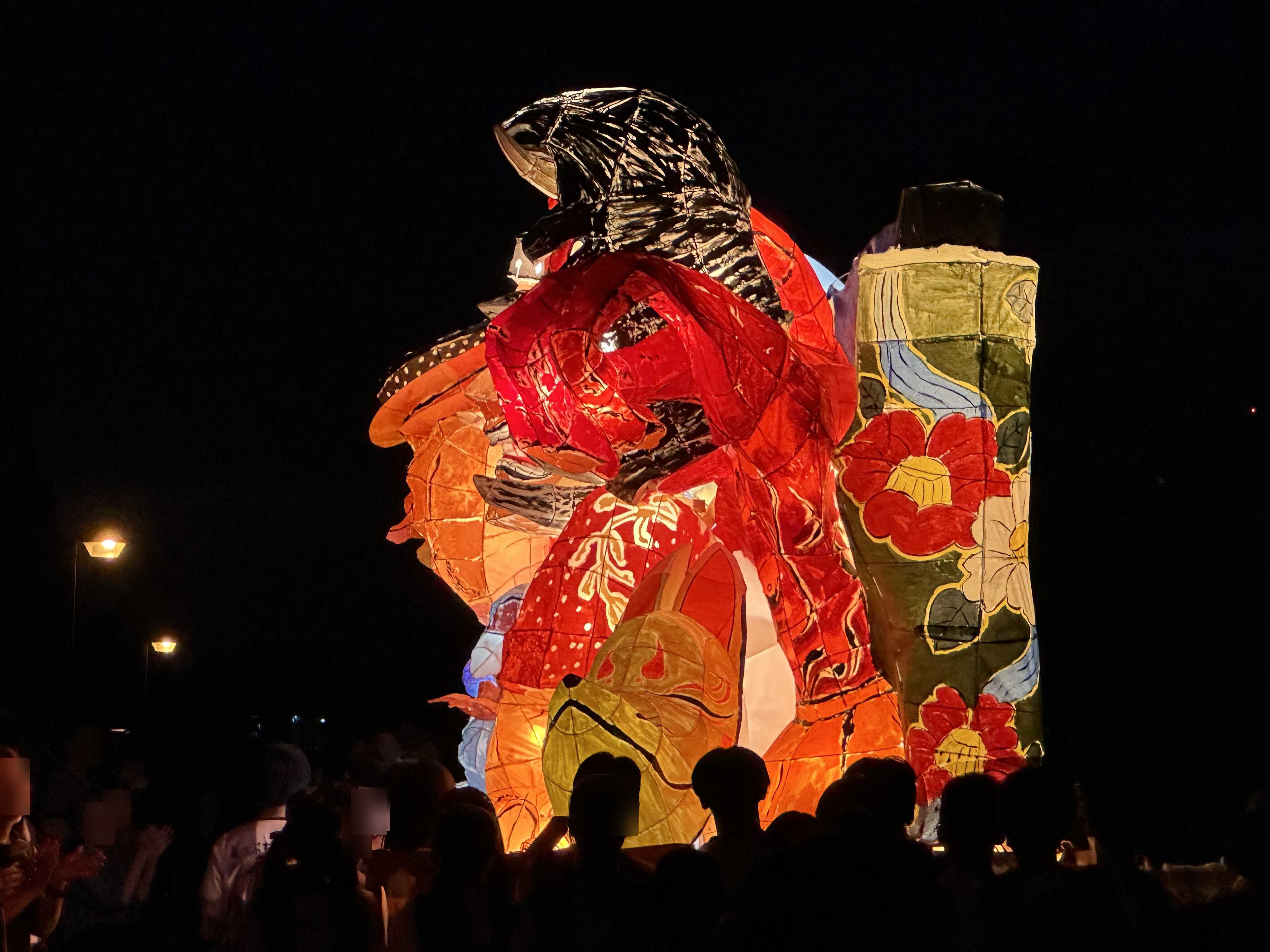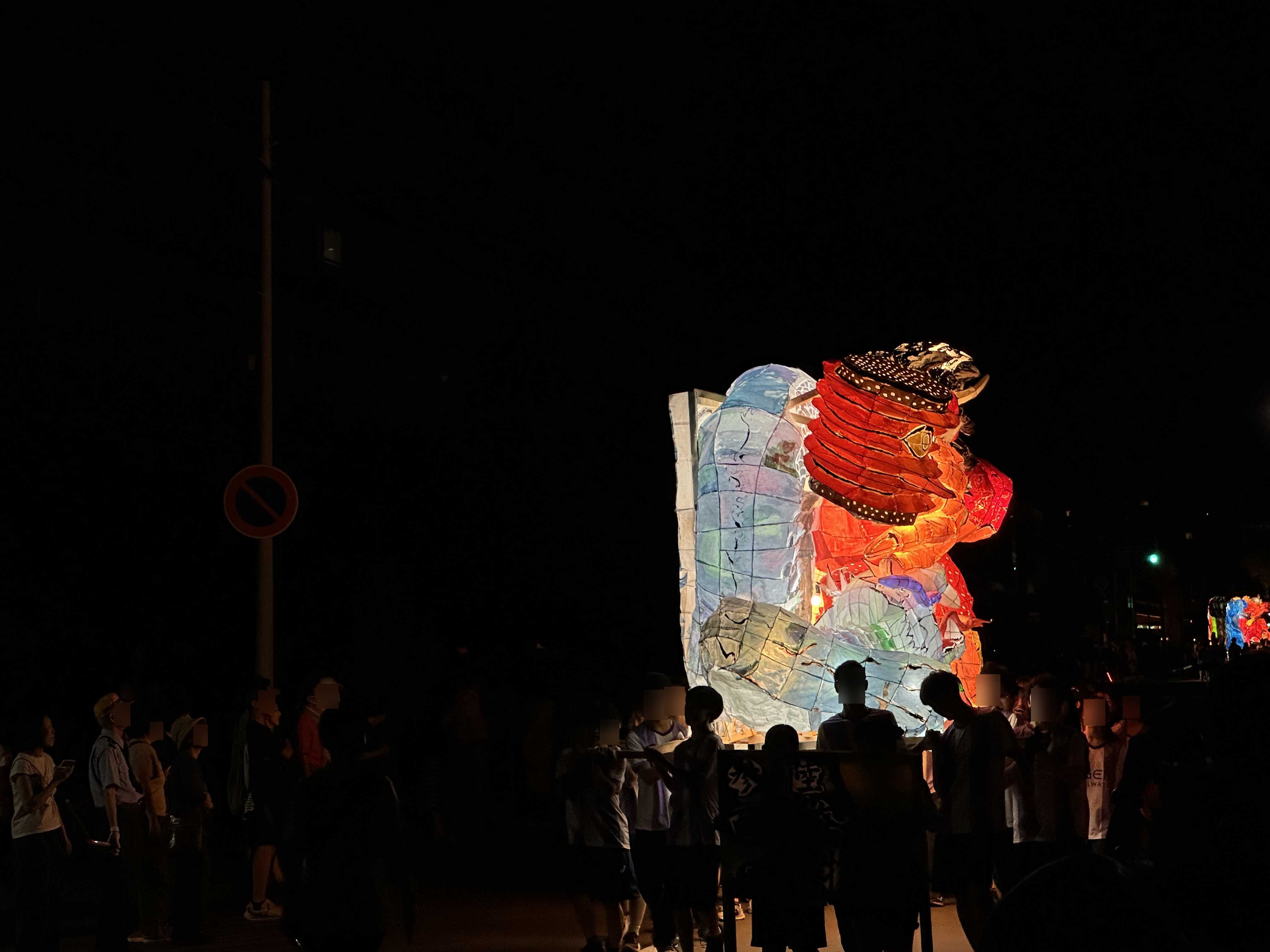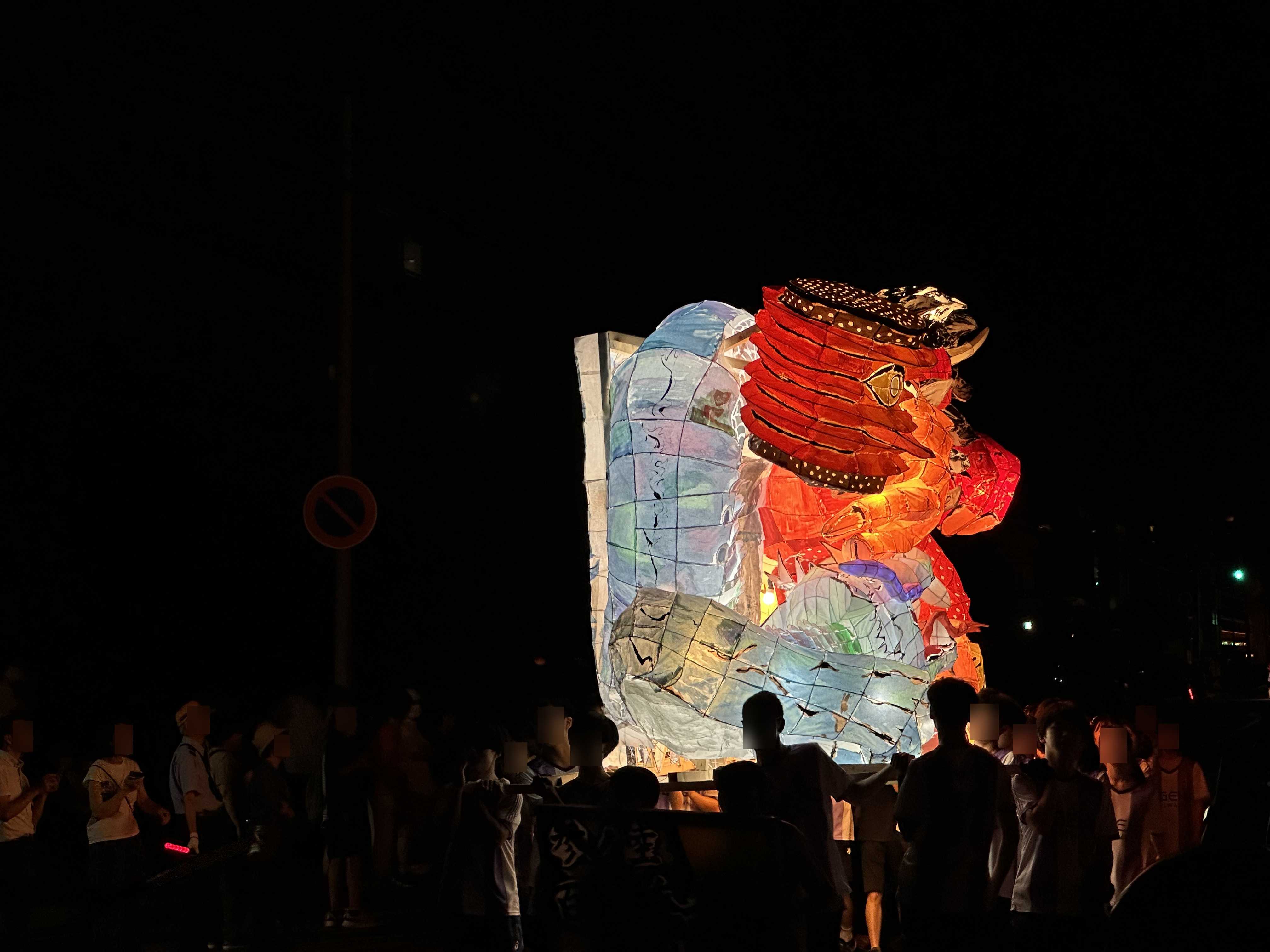 ある宵、藤原常行掟を破り夜道を密かにかけし時、百鬼夜行に遭遇してしまった...この麗美な妖怪に息を吹き込んだのが精鋭6組の行灯武者諸君です。土台から針金、紙張、色塗りに至るまで各部門の熟練工ここに集結!世界に誇る行灯にご注目♡