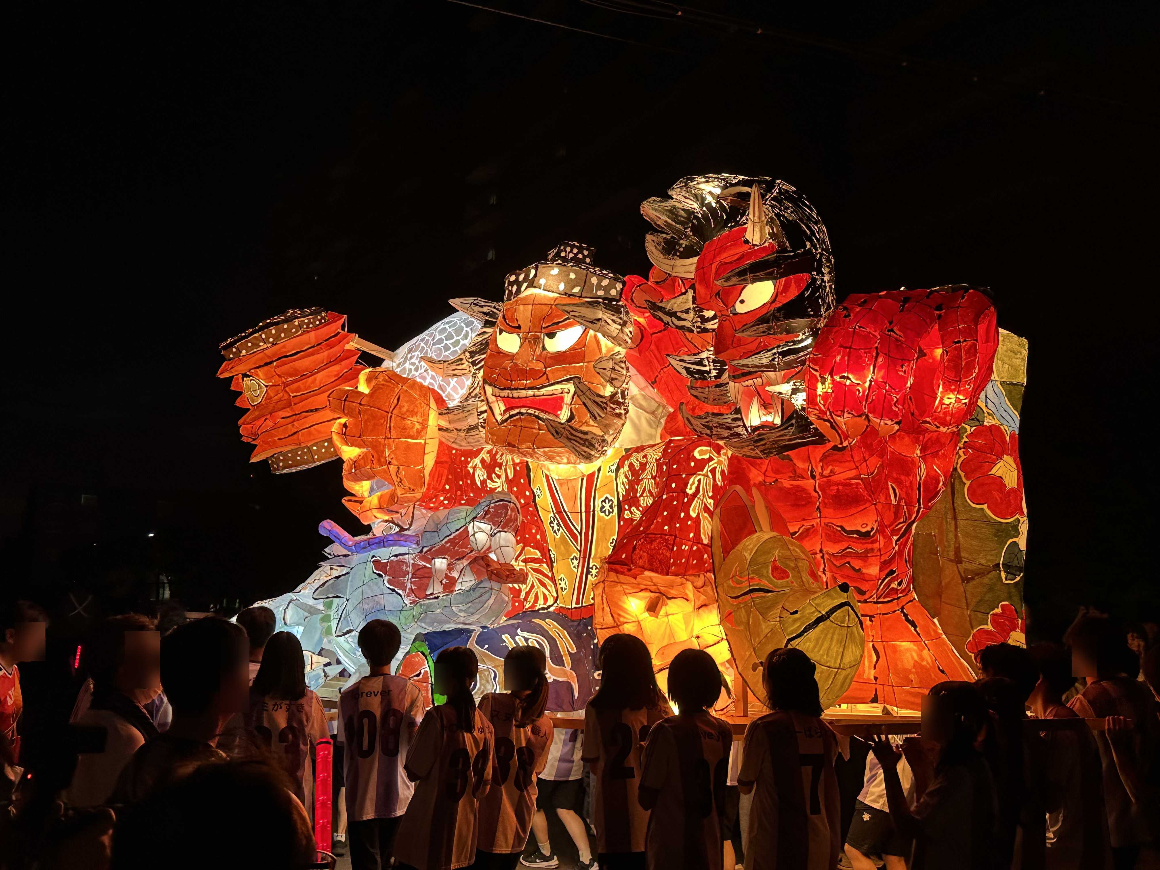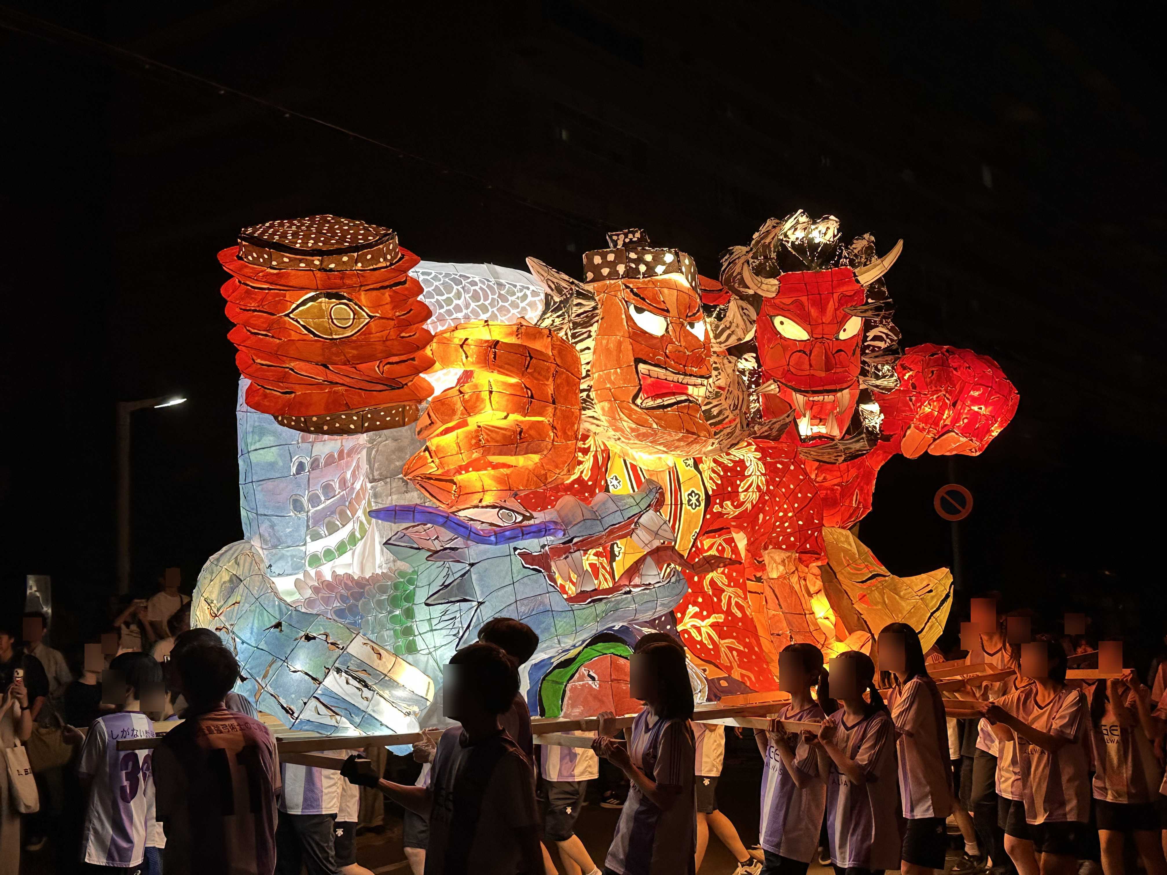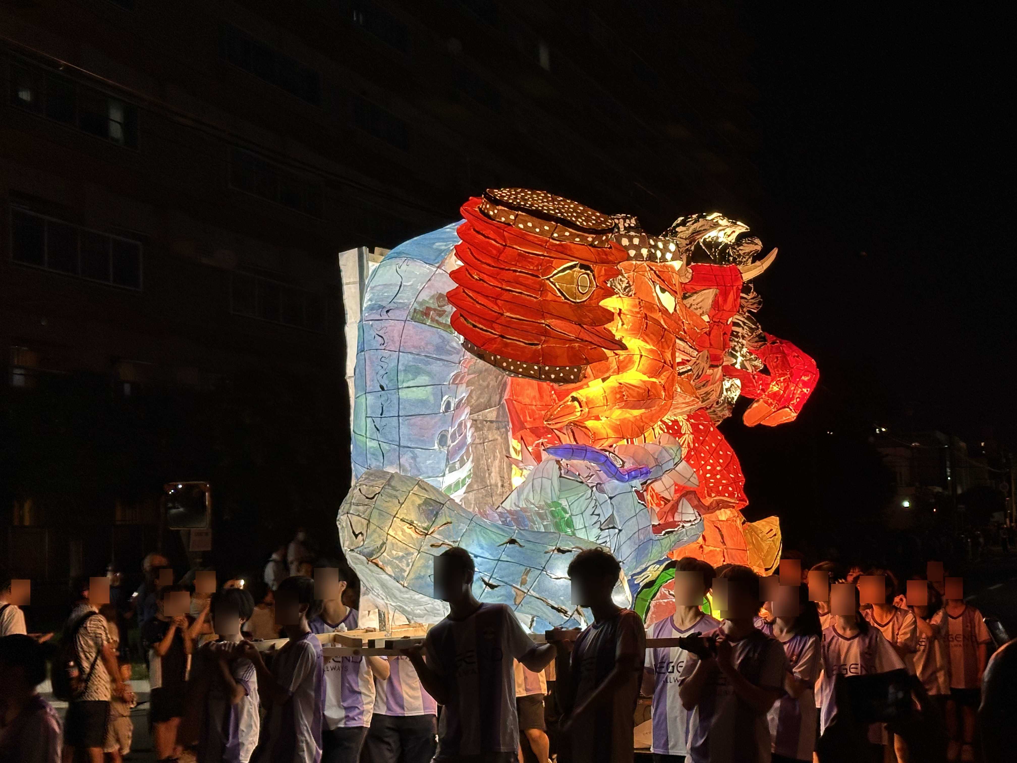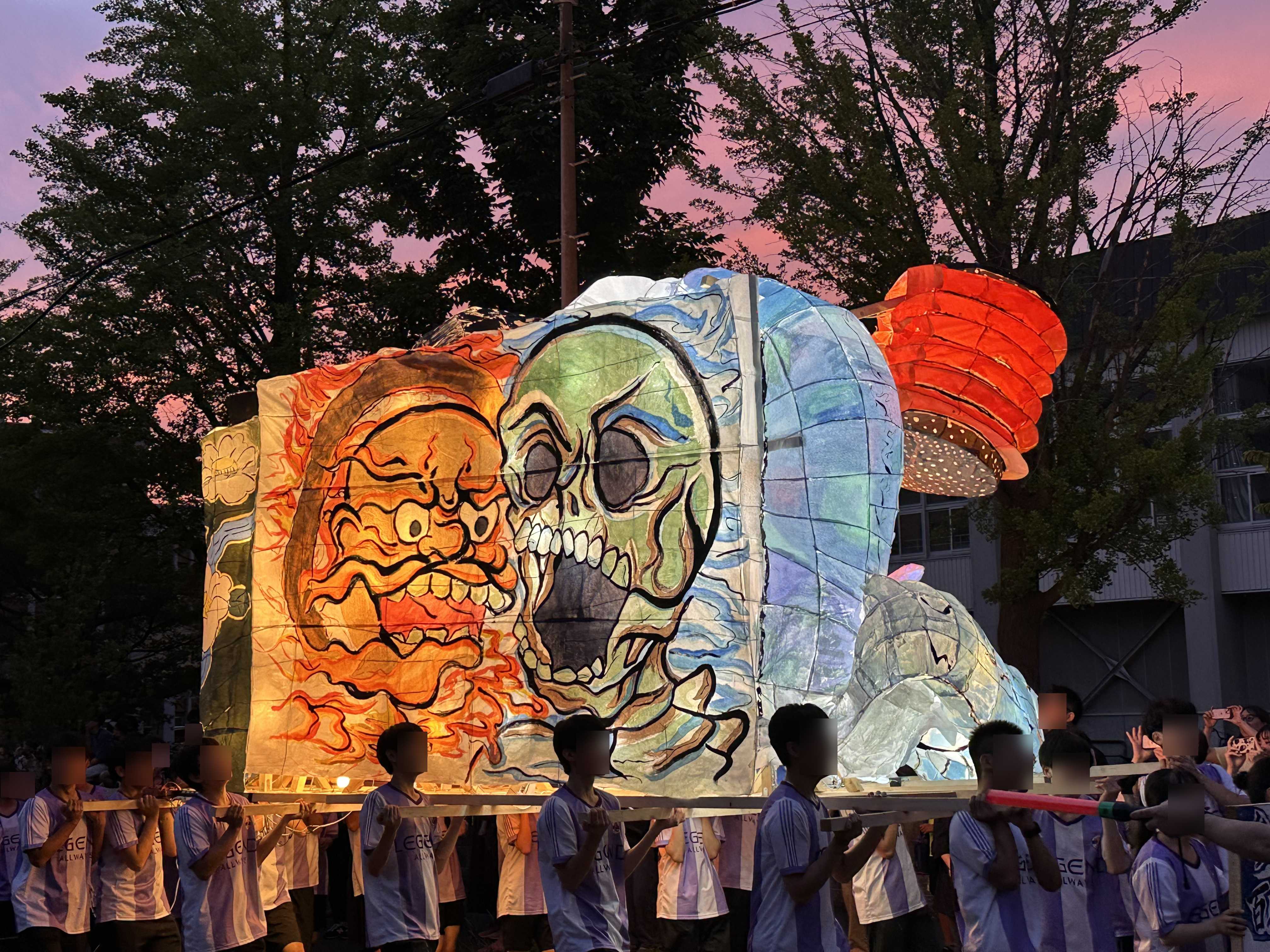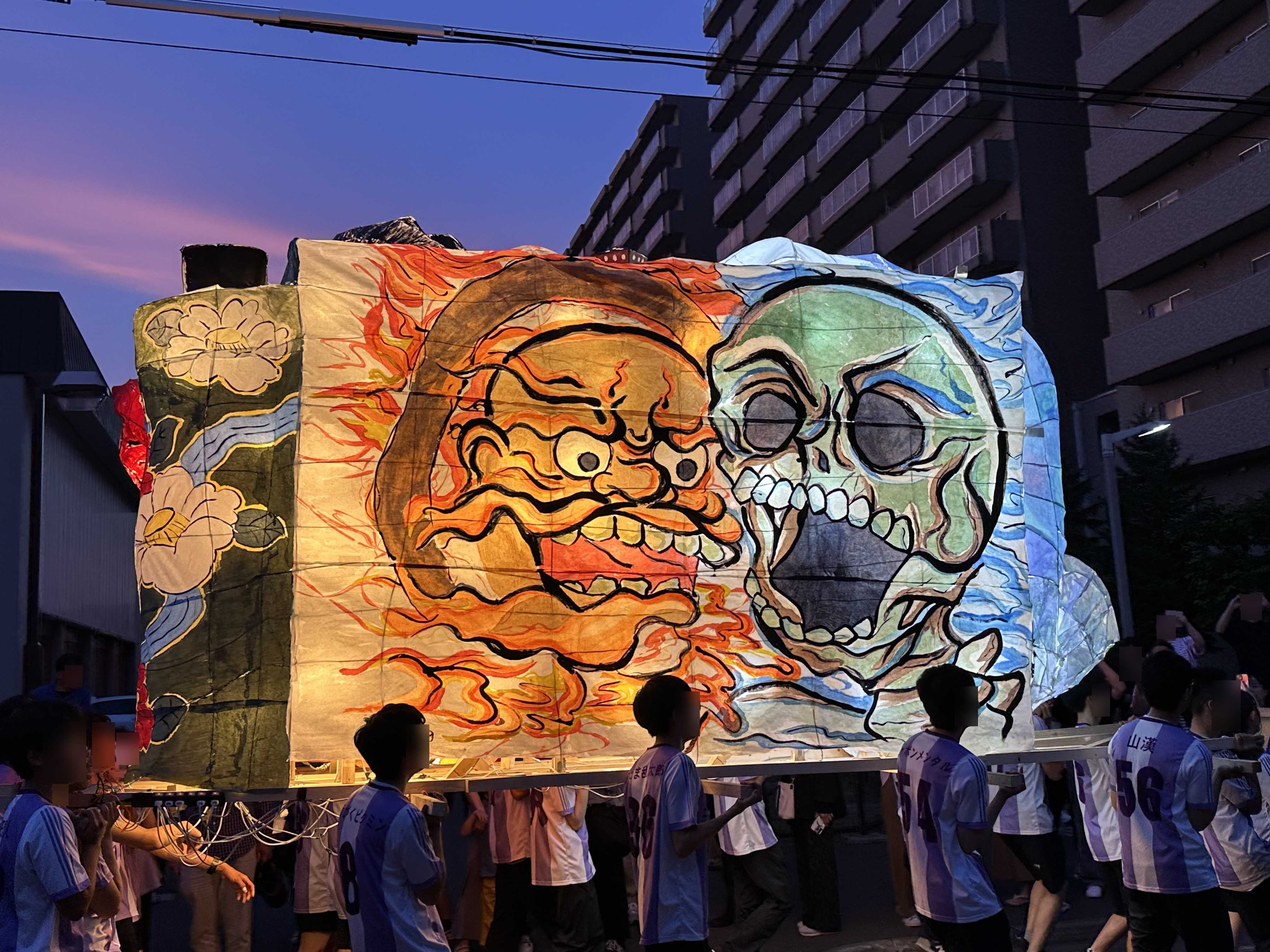 ある宵、藤原常行掟を破り夜道を密かにかけし時、百鬼夜行に遭遇してしまった...この麗美な妖怪に息を吹き込んだのが精鋭6組の行灯武者諸君です。土台から針金、紙張、色塗りに至るまで各部門の熟練工ここに集結!世界に誇る行灯にご注目♡
