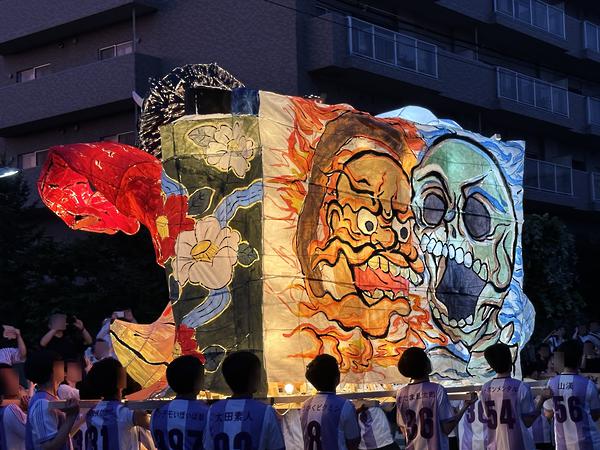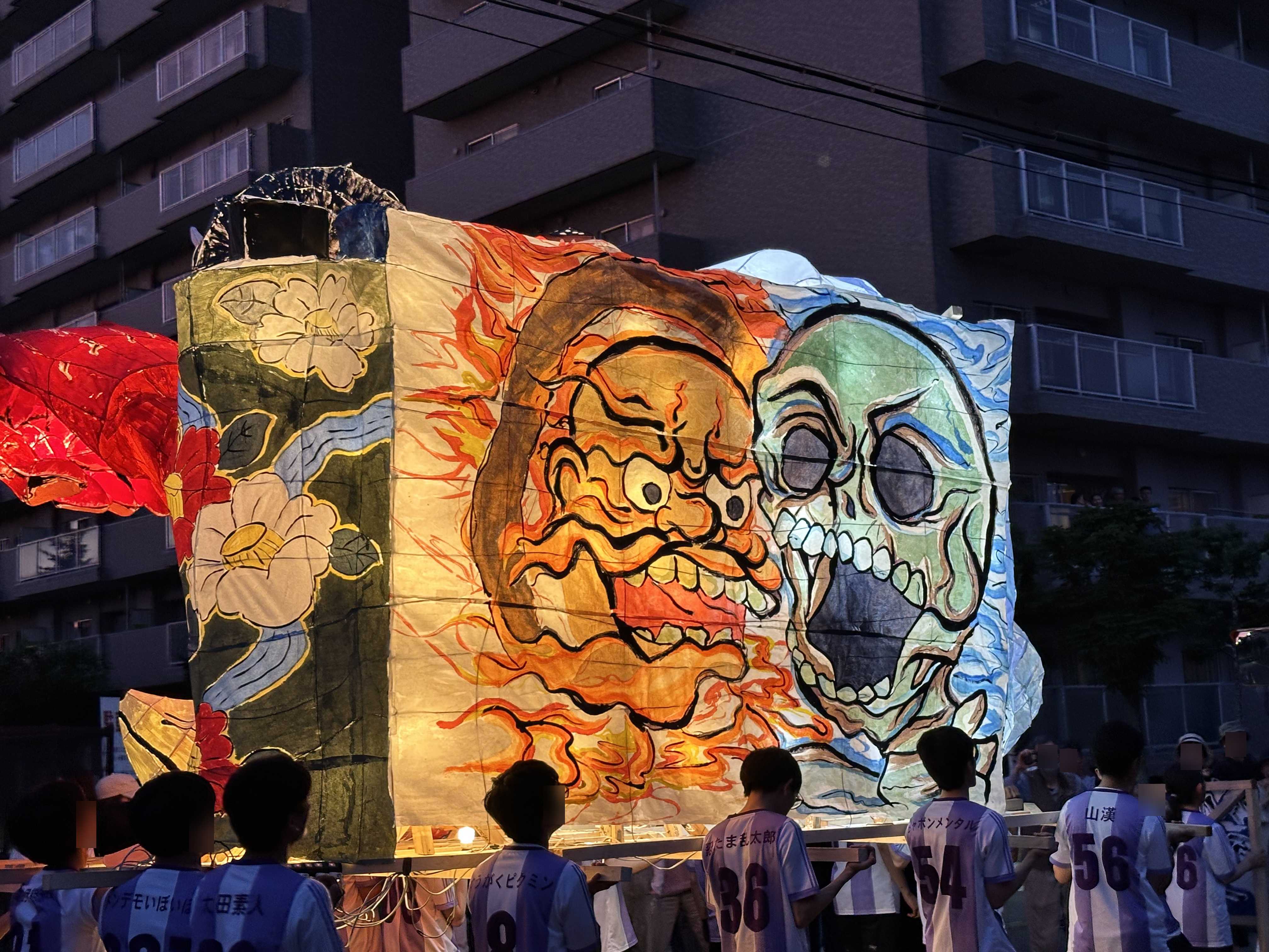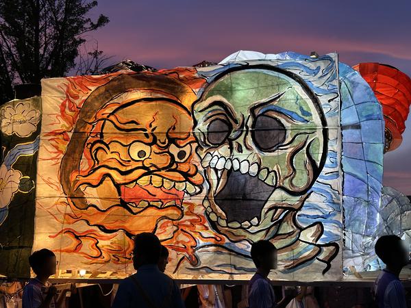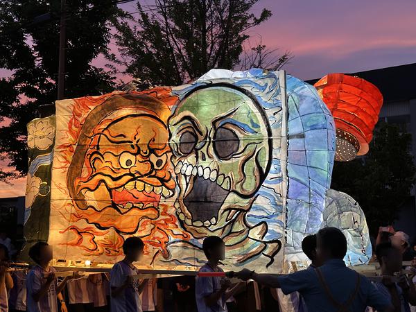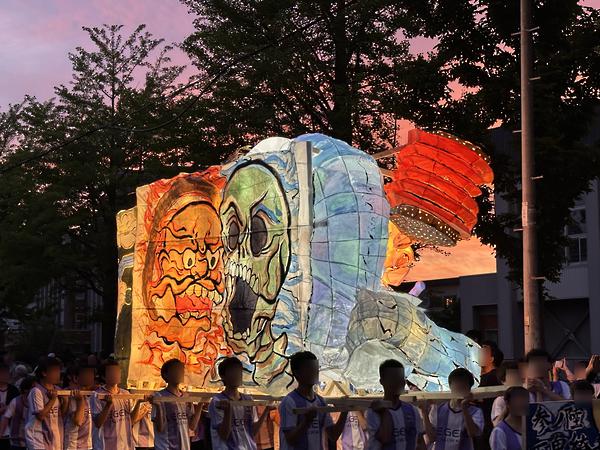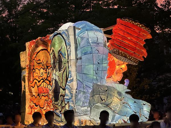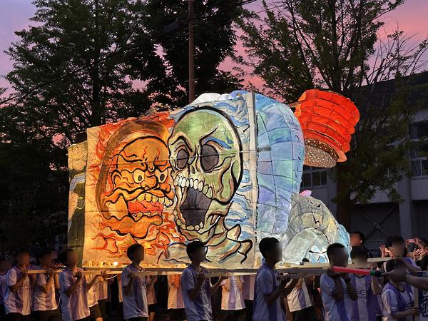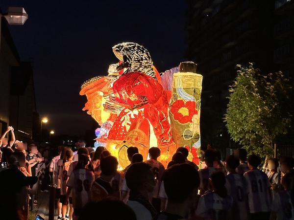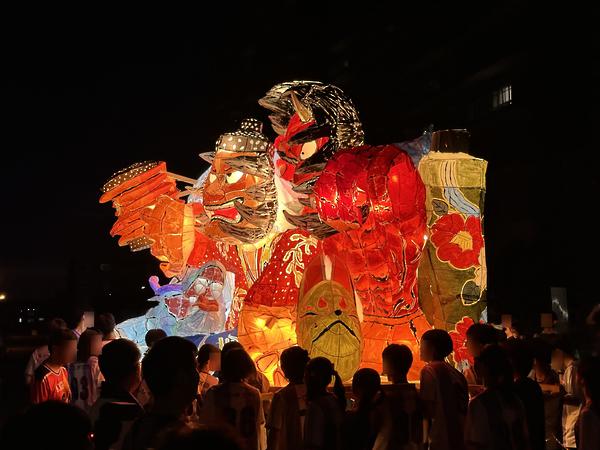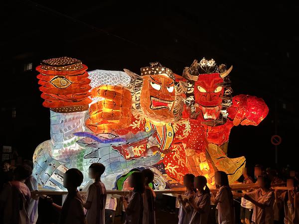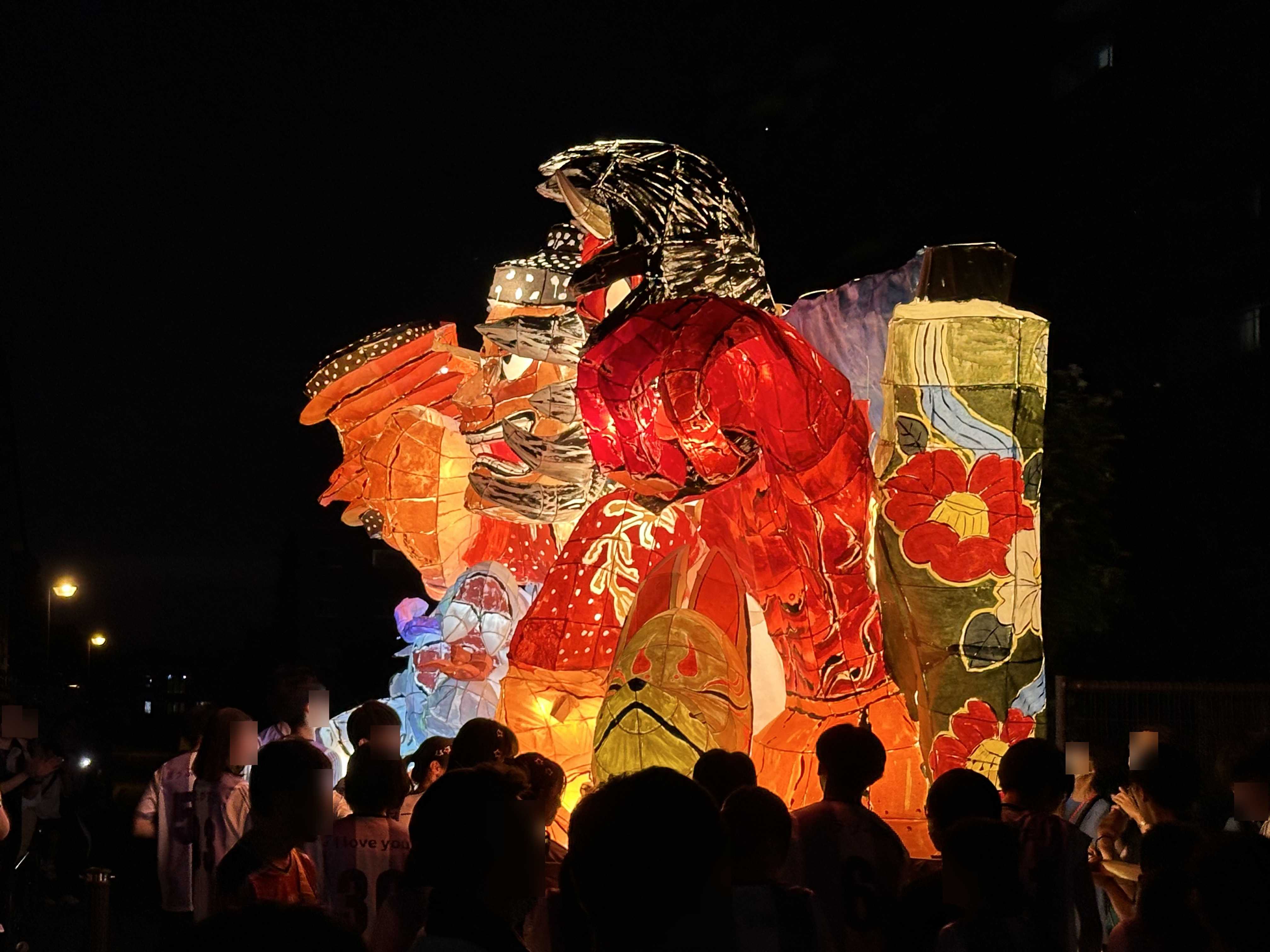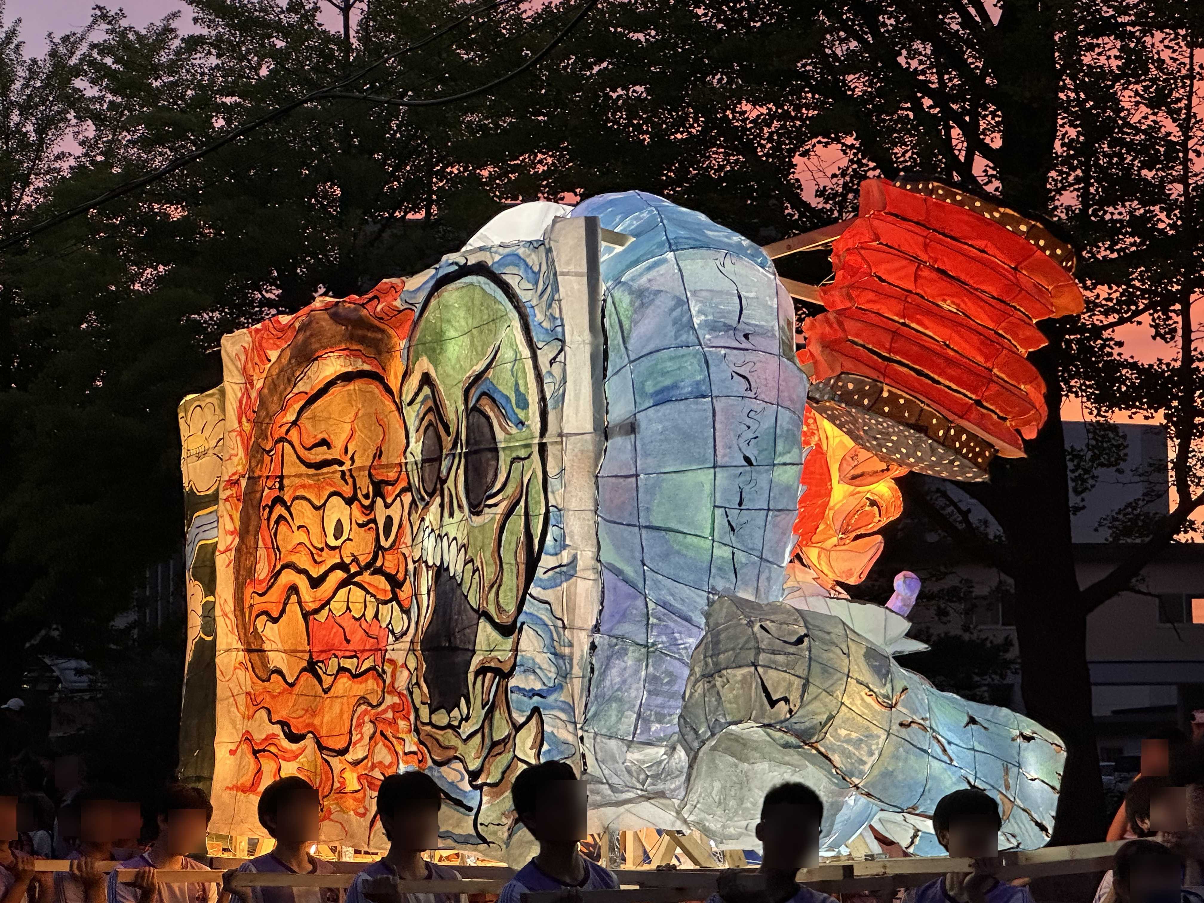 ある宵、藤原常行掟を破り夜道を密かにかけし時、百鬼夜行に遭遇してしまった...この麗美な妖怪に息を吹き込んだのが精鋭6組の行灯武者諸君です。土台から針金、紙張、色塗りに至るまで各部門の熟練工ここに集結!世界に誇る行灯にご注目♡