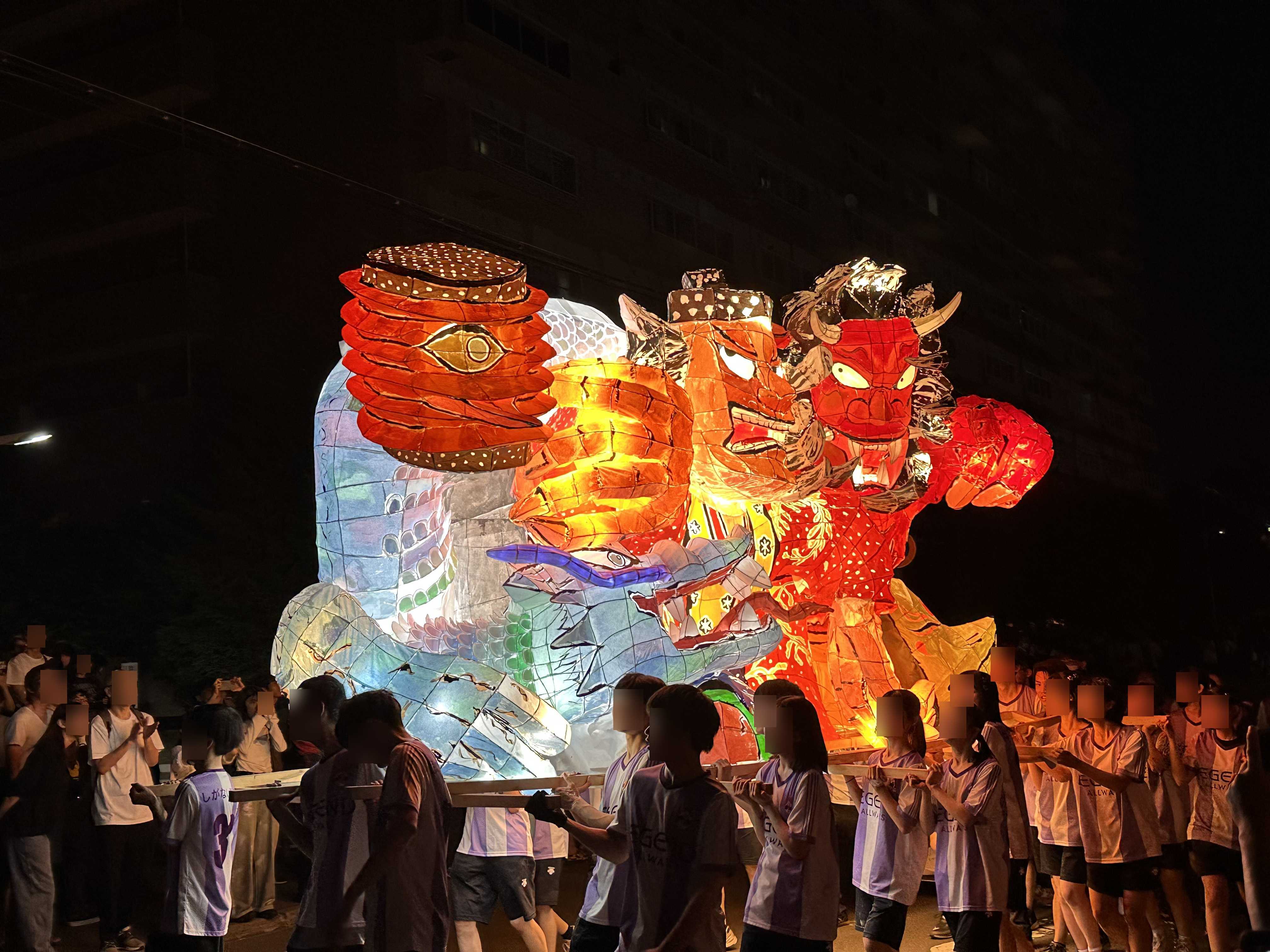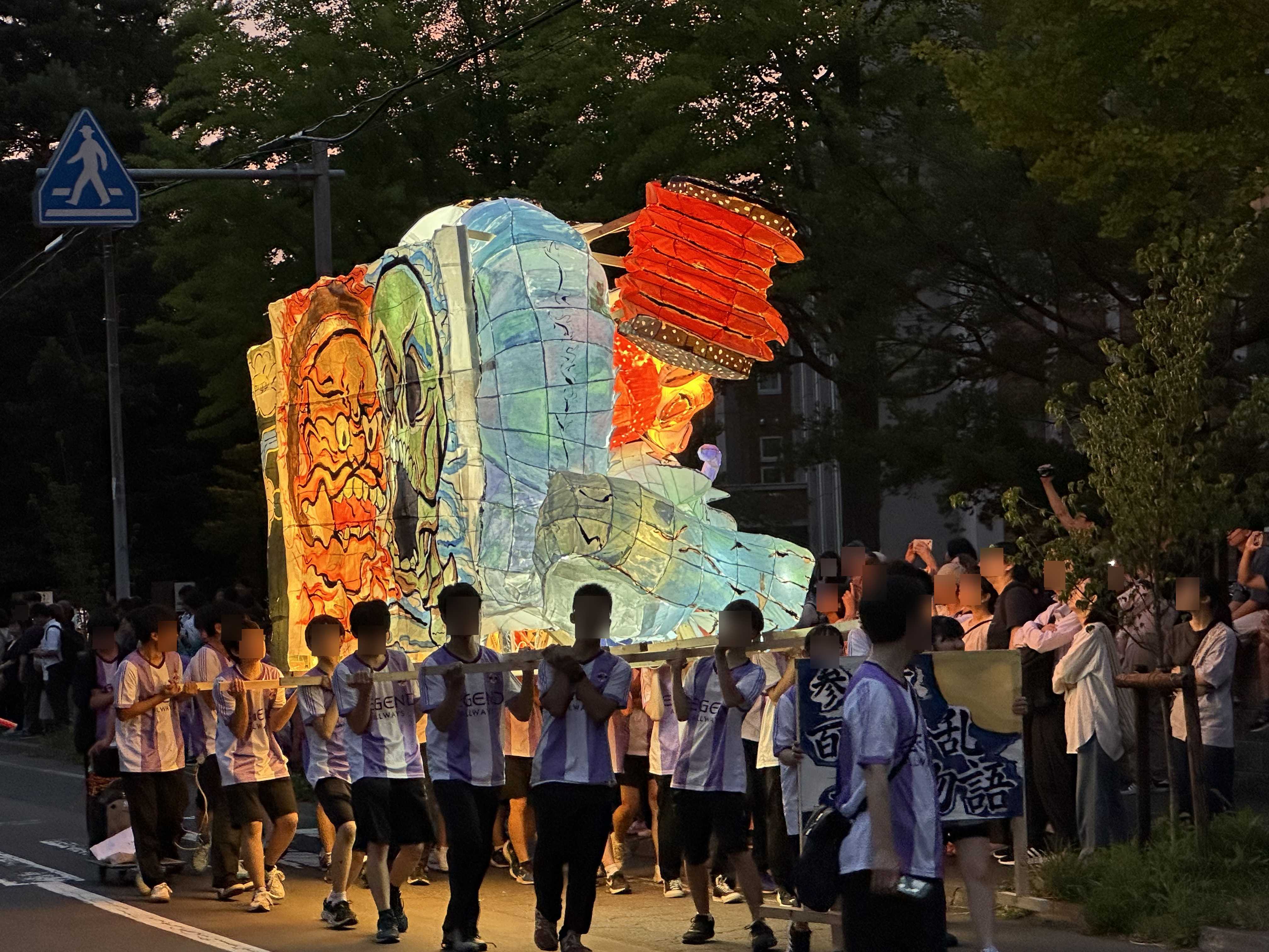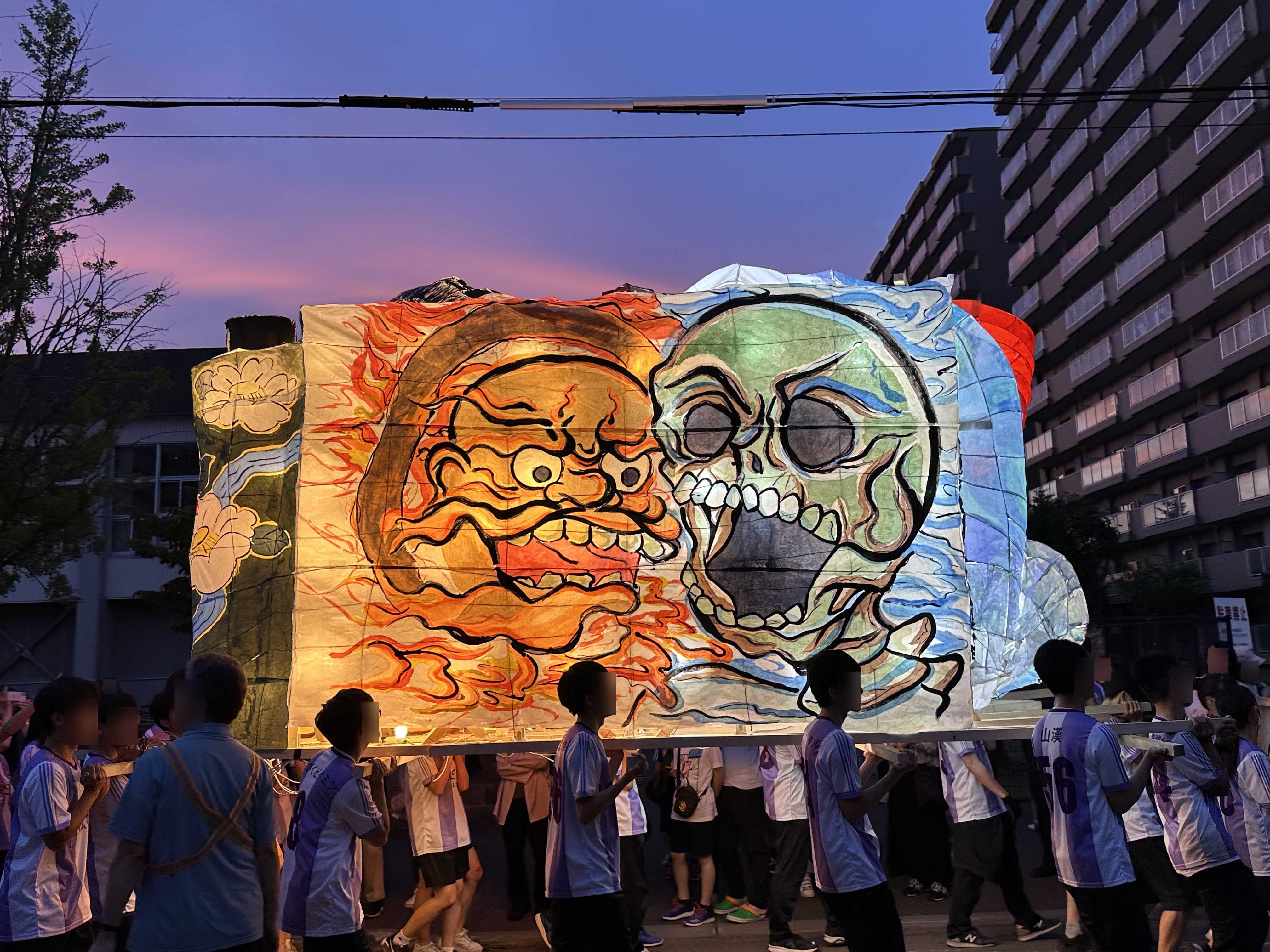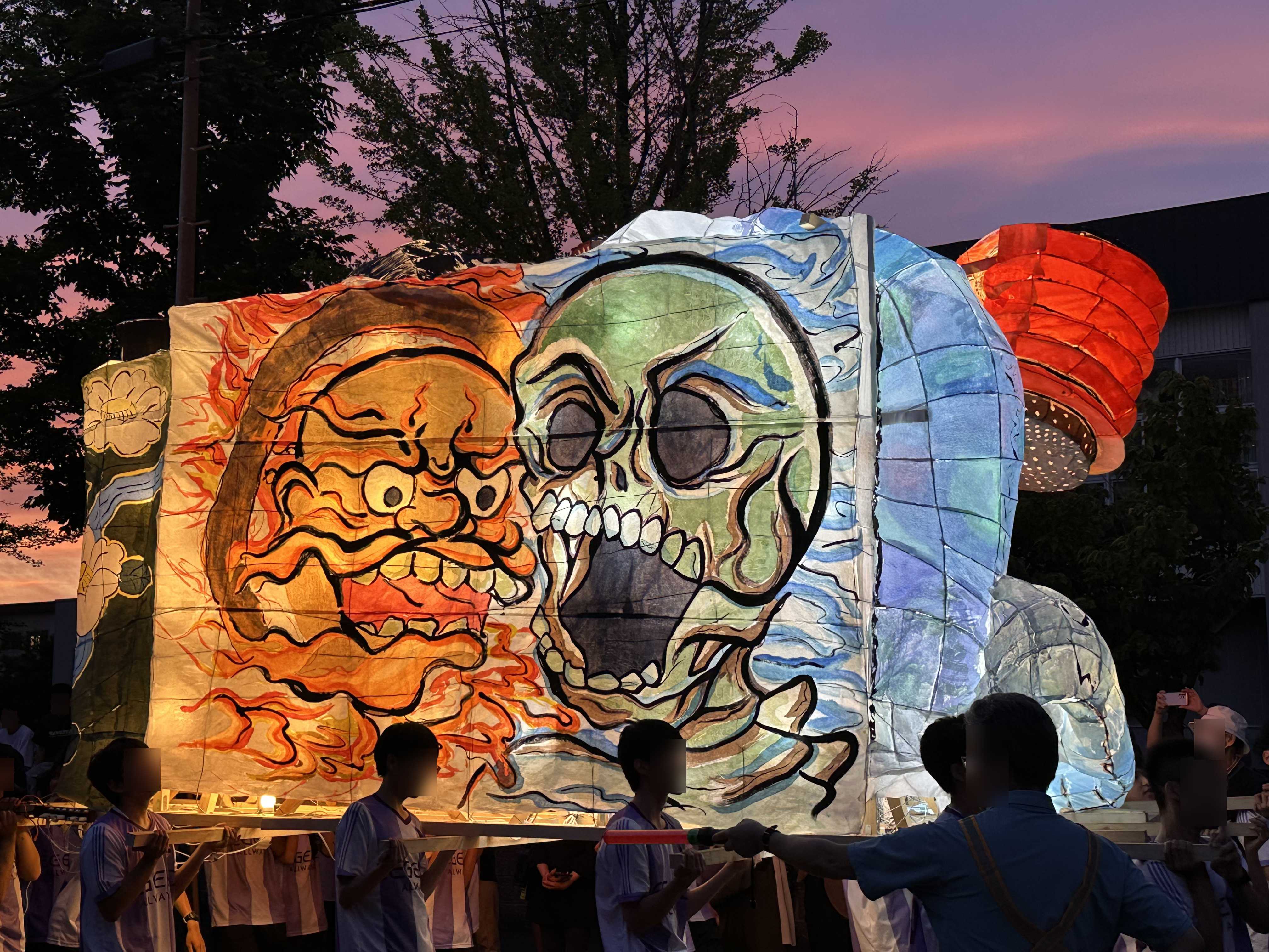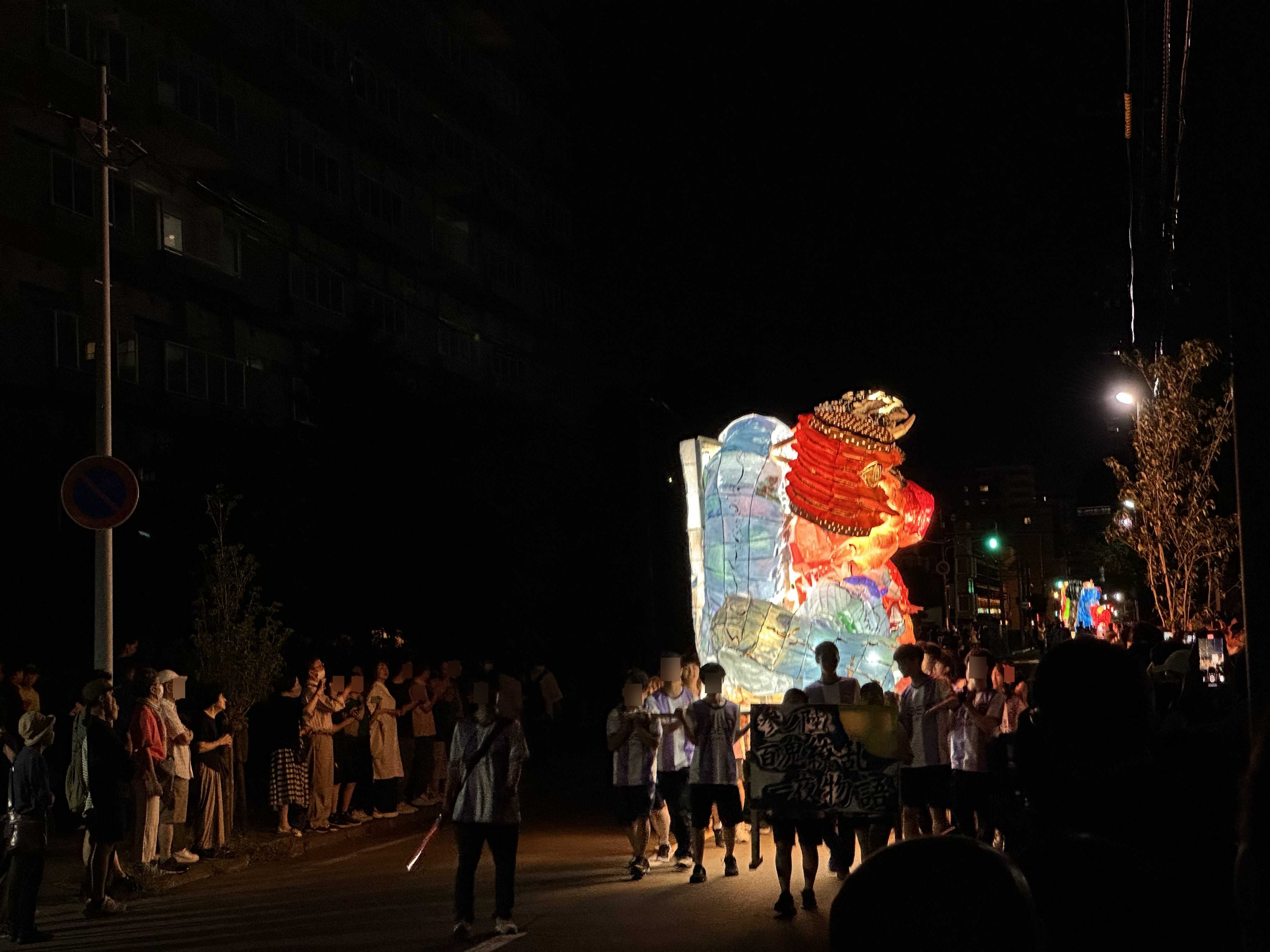 ある宵、藤原常行掟を破り夜道を密かにかけし時、百鬼夜行に遭遇してしまった...この麗美な妖怪に息を吹き込んだのが精鋭6組の行灯武者諸君です。土台から針金、紙張、色塗りに至るまで各部門の熟練工ここに集結!世界に誇る行灯にご注目♡
