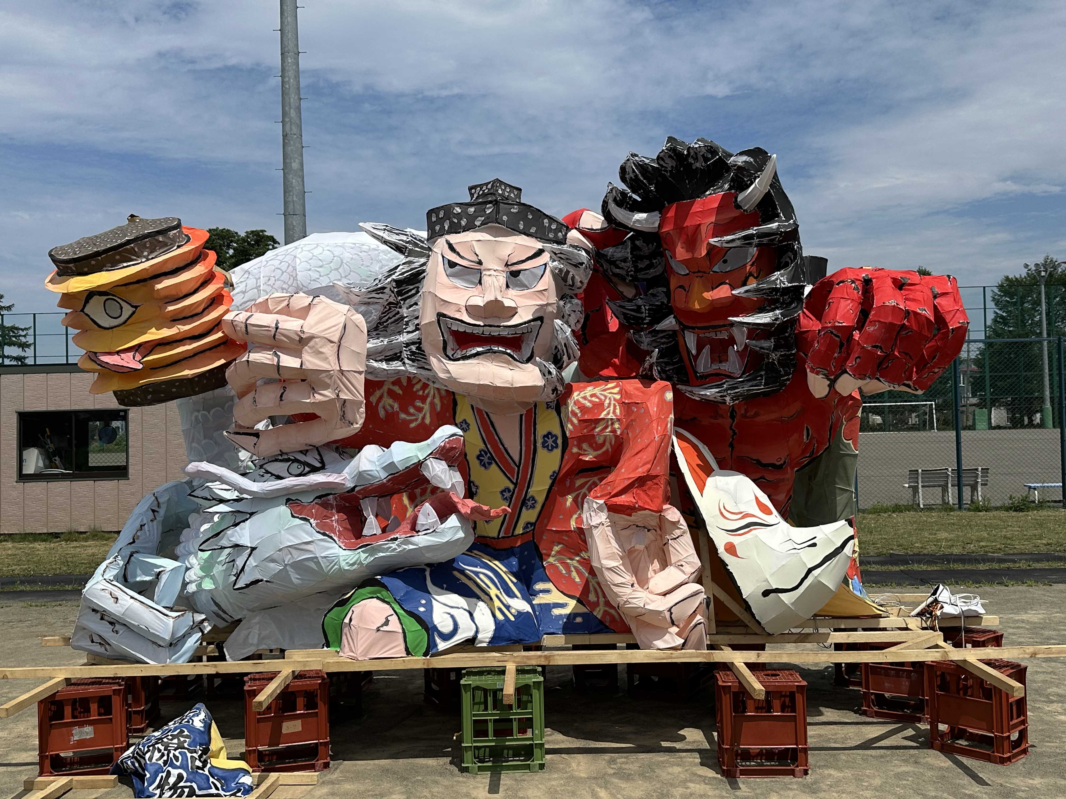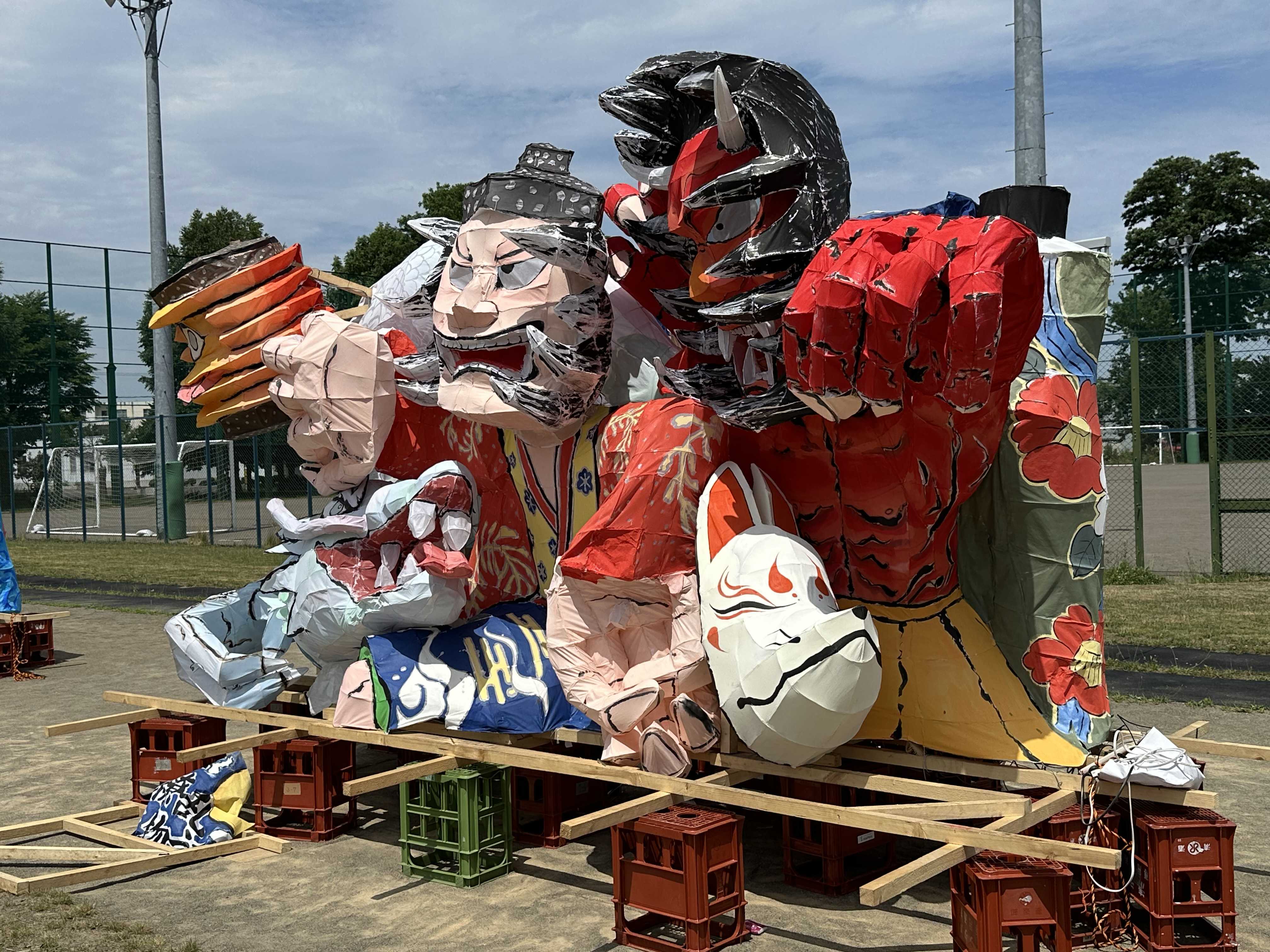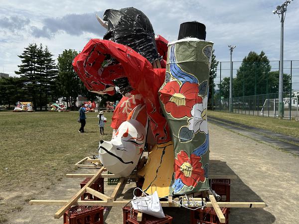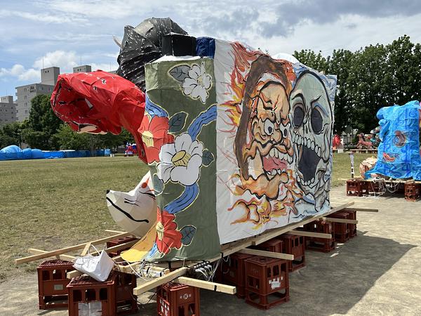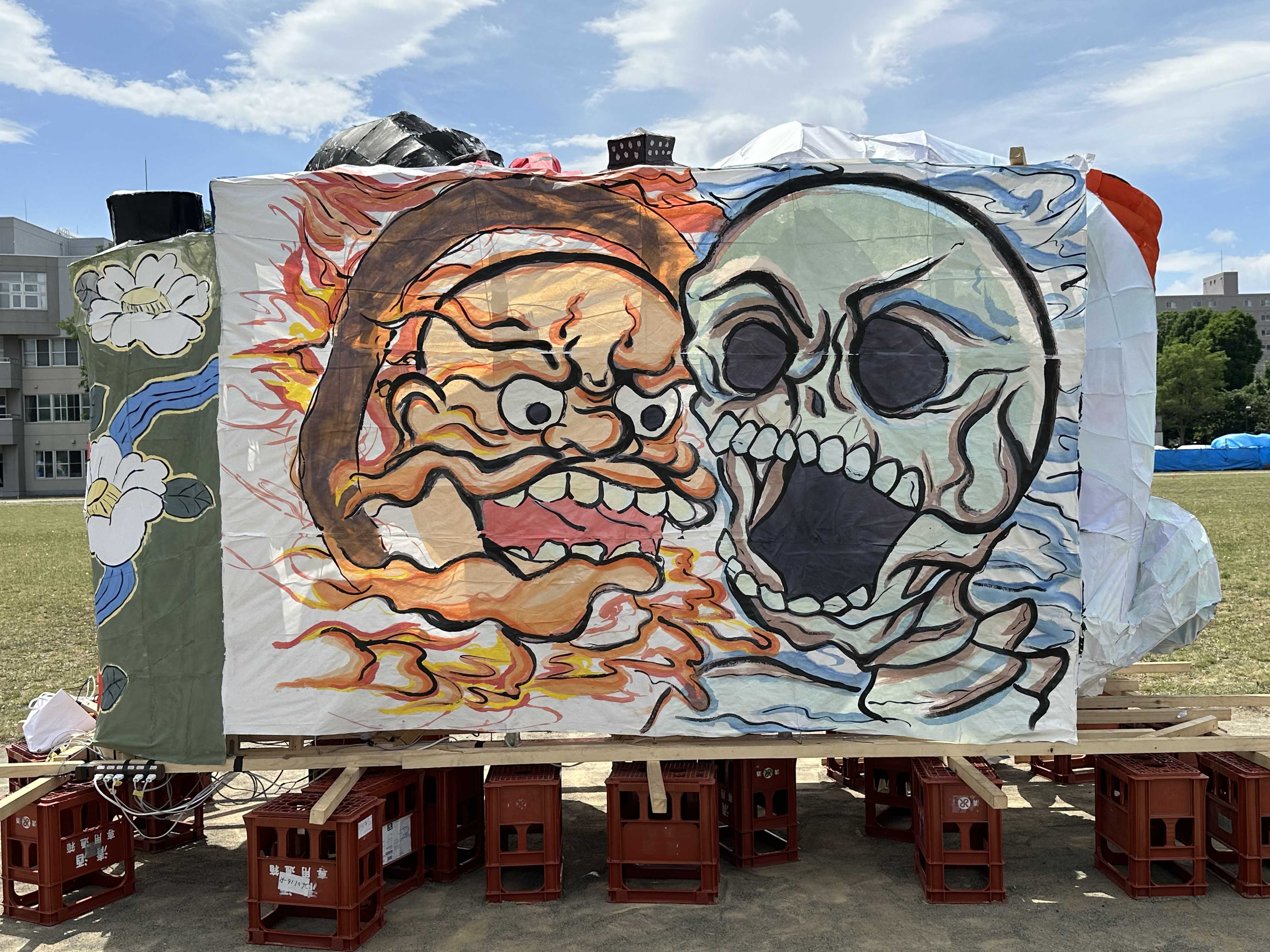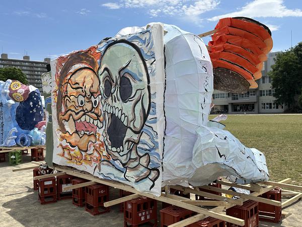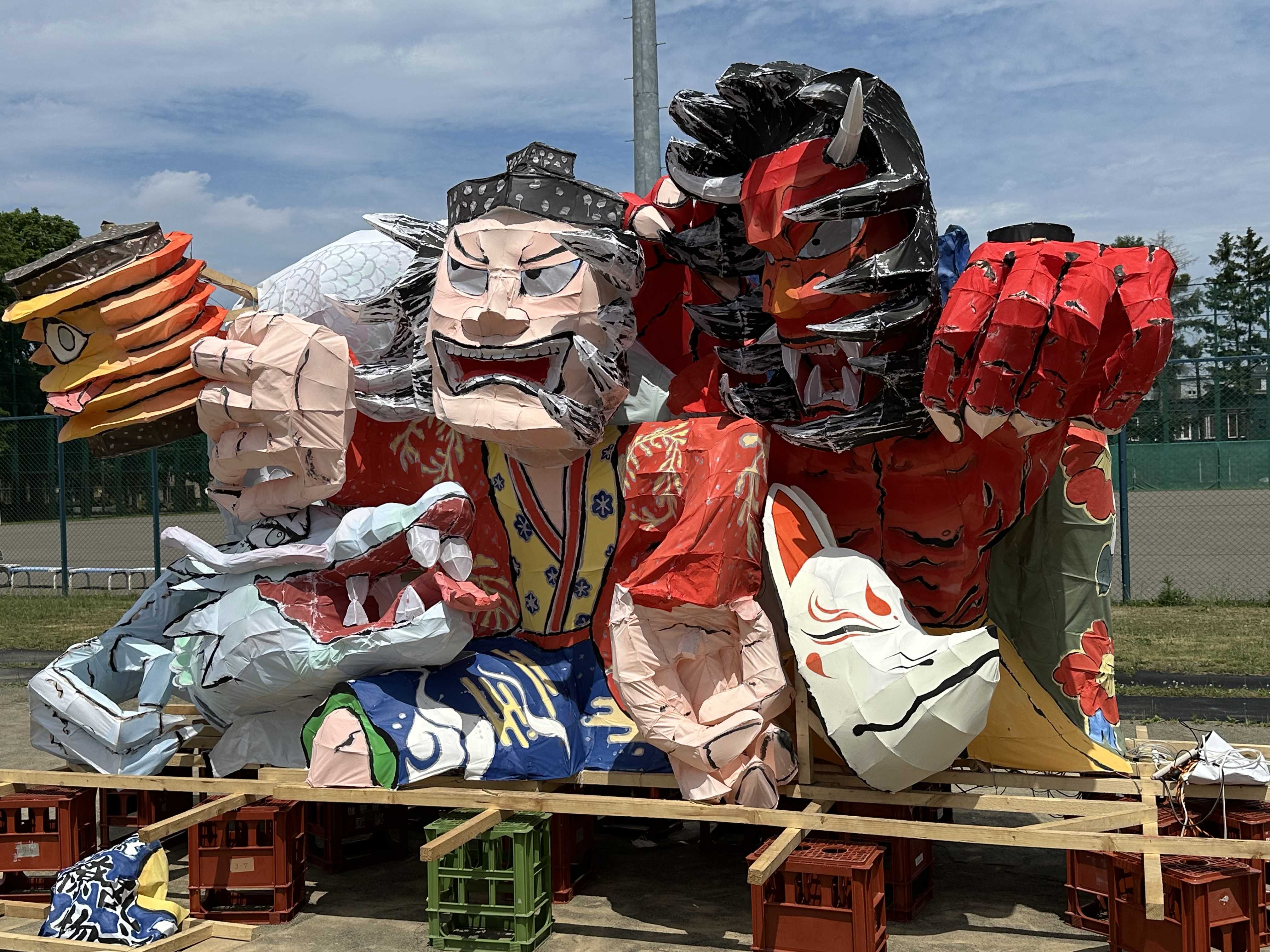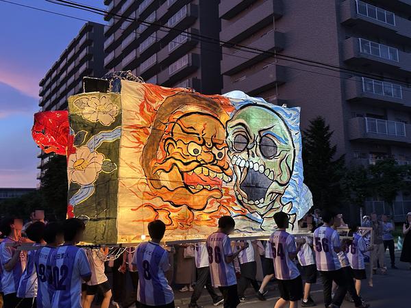 ある宵、藤原常行掟を破り夜道を密かにかけし時、百鬼夜行に遭遇してしまった...この麗美な妖怪に息を吹き込んだのが精鋭6組の行灯武者諸君です。土台から針金、紙張、色塗りに至るまで各部門の熟練工ここに集結!世界に誇る行灯にご注目♡